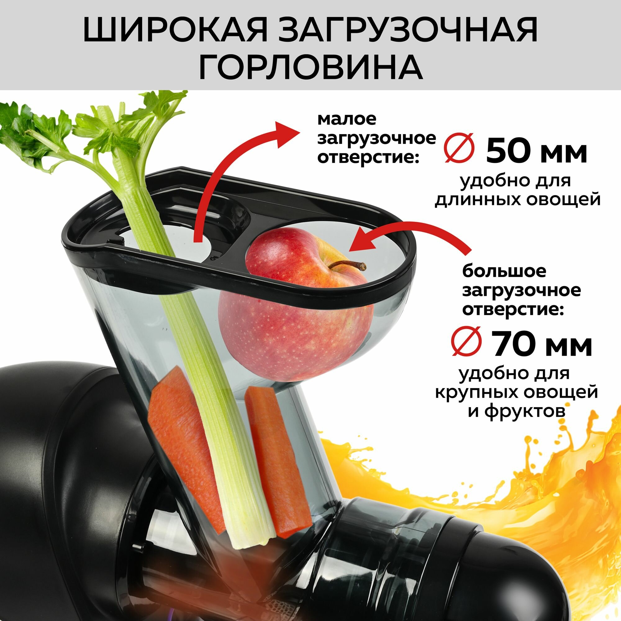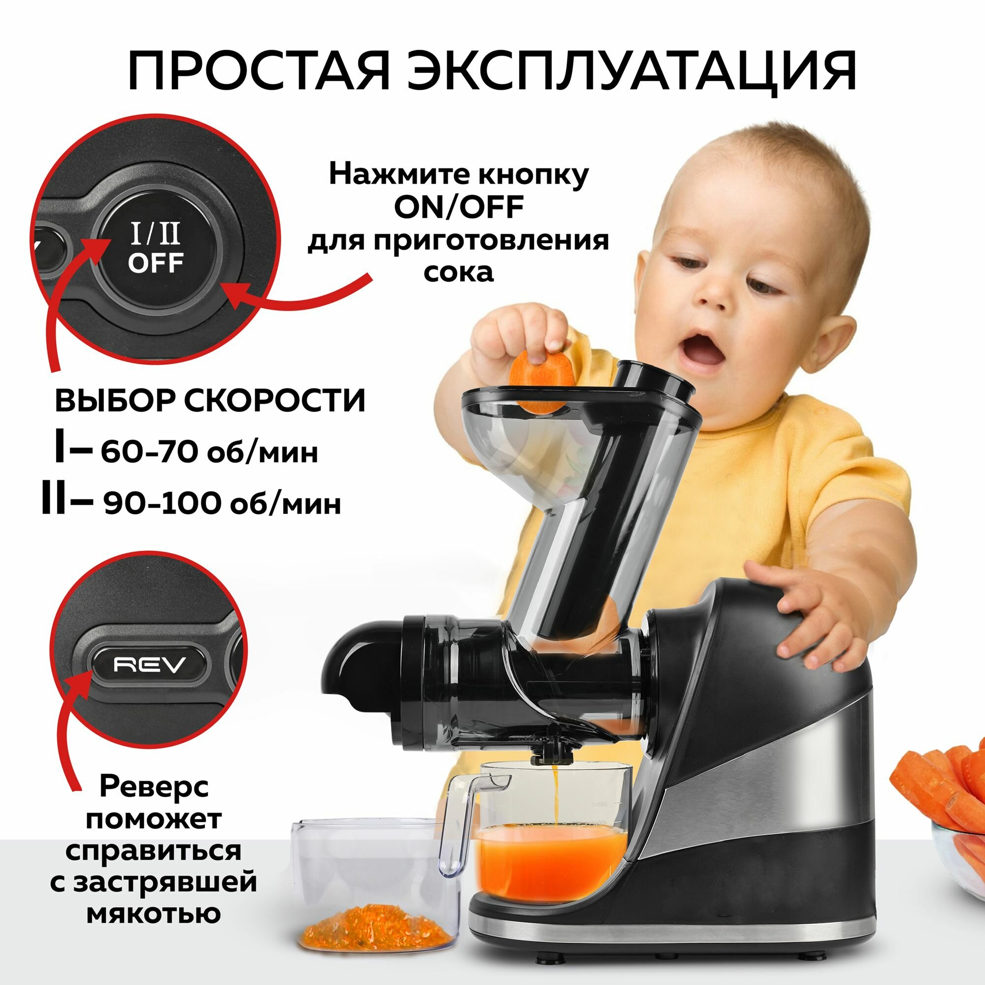 | Особенности | система прямой подачи сока / система «капля-стоп» / защита от перегрузки / реверс |