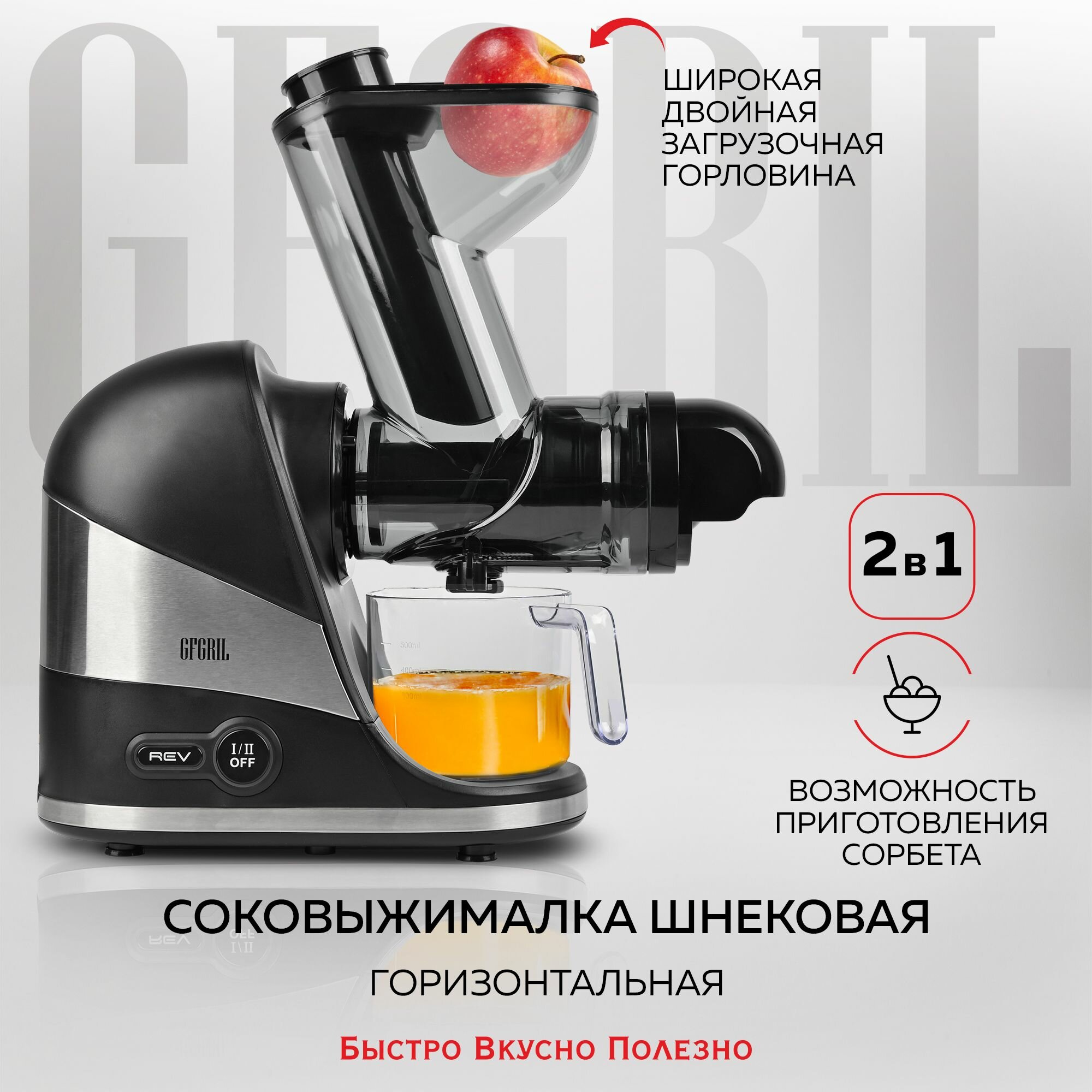 Купить GFGRIL Соковыжималка шнековая 2 в 1 GF-J30, широкая загрузочная горловина, приготовление сорбета, система легкой очистки EasyClean