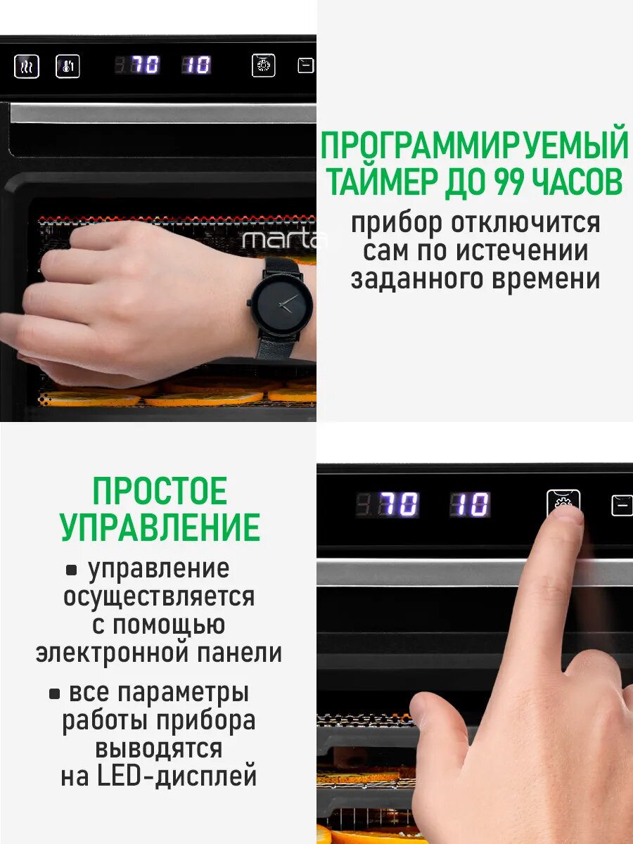 MARTA MFD-5042PS 6 поддонов 4+2(пастила) темный обсидиан сушилка д/фруктов,овощей