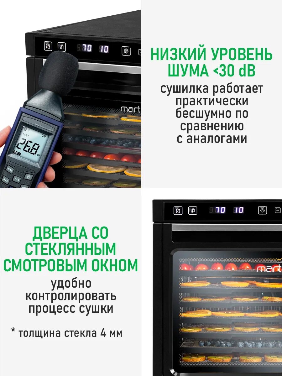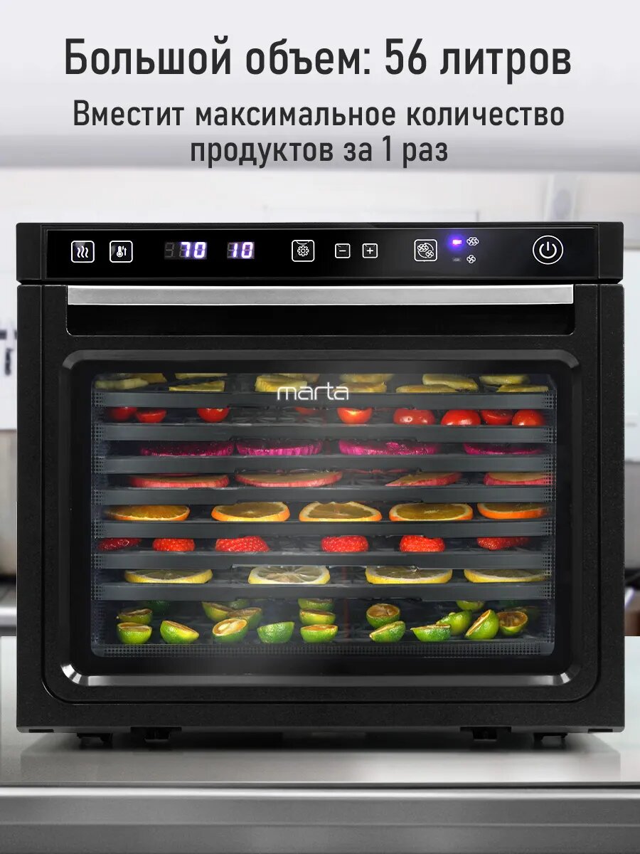 Купить Дегидратор сушилка для овощей электросушилка MARTA MT-FD1891A профессиональная с горизонтальным обдувом 8 поддонов черный