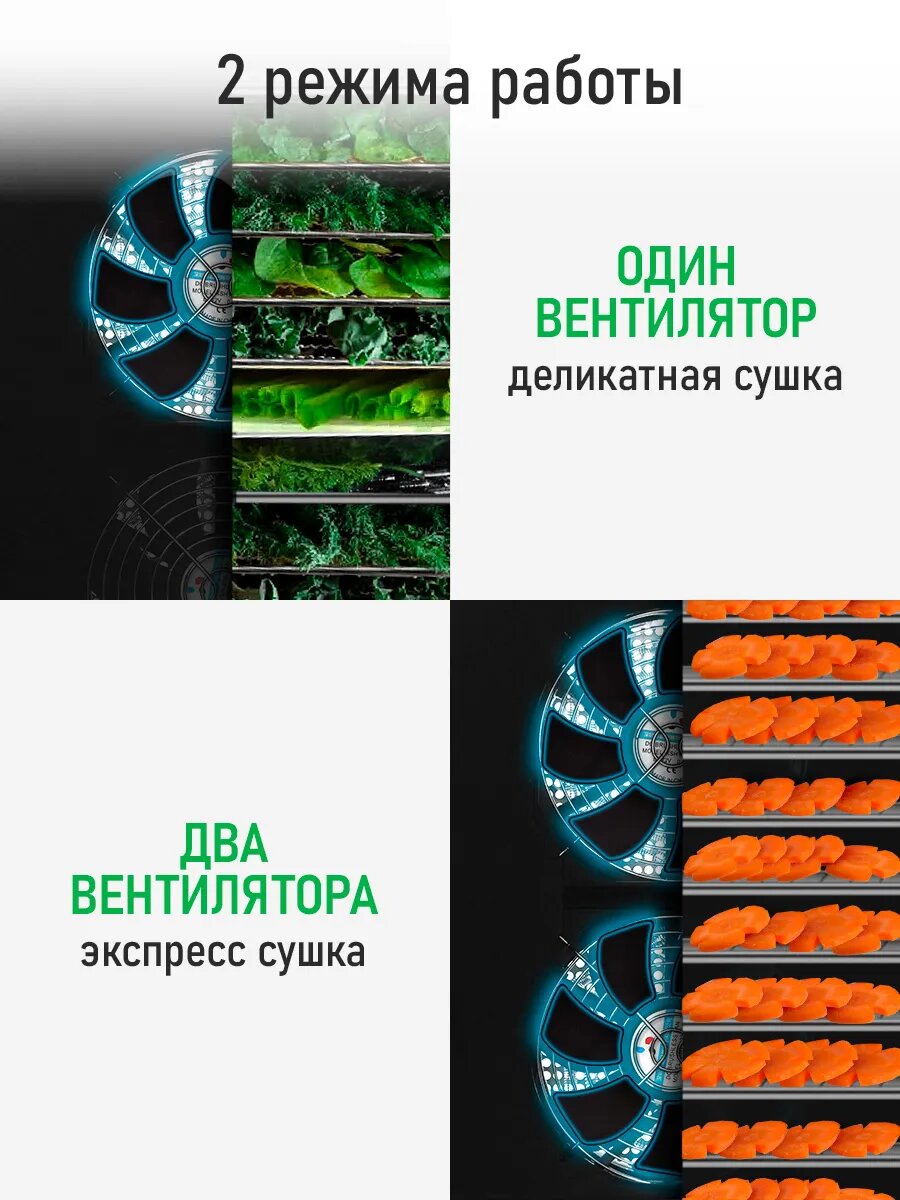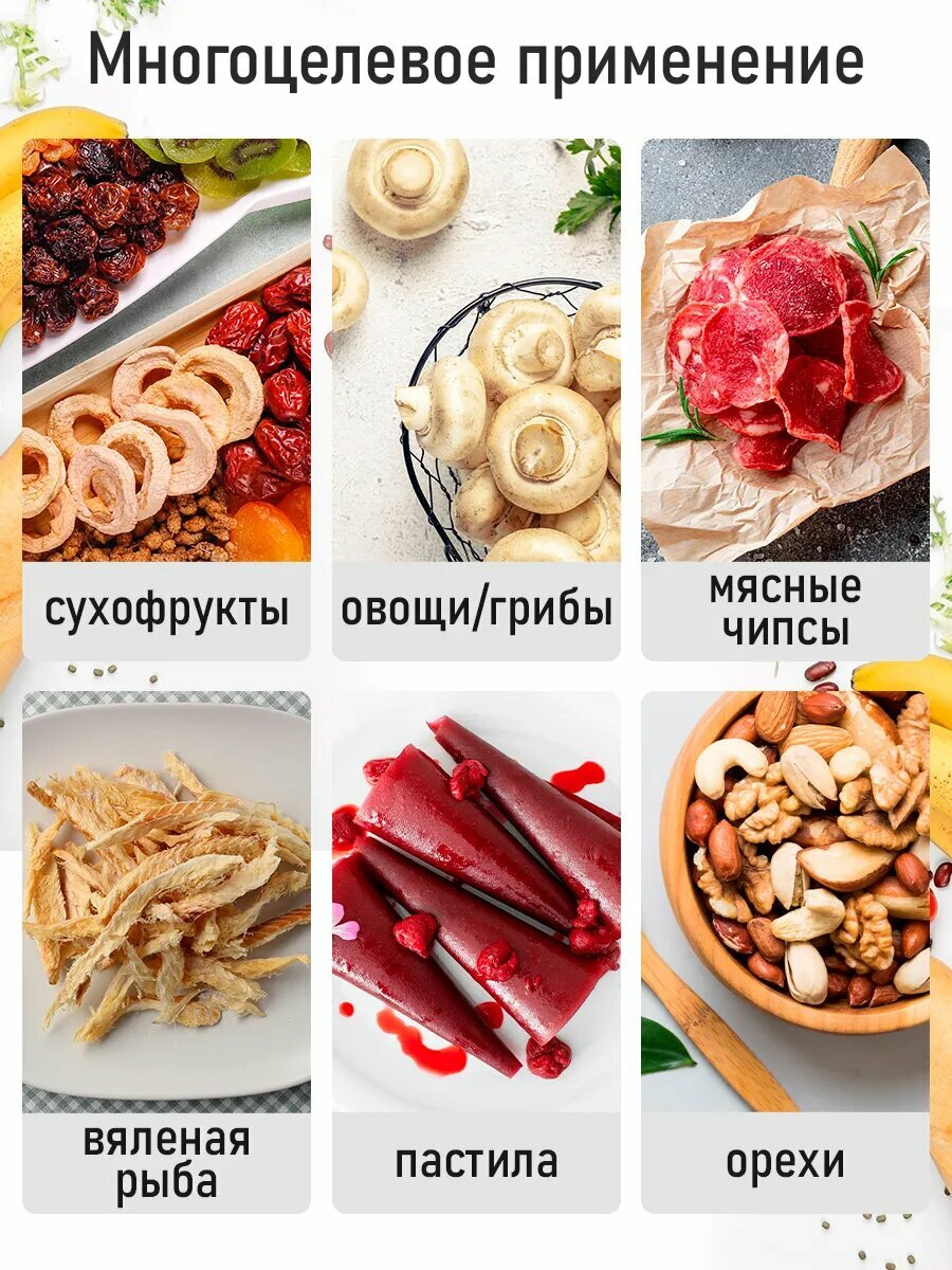 | Отзыв: | Шесть поддонов хватает на большие объемы загрузки фруктов или овощей одновременно. Не приходится запускать по несколько раз. Легкое использование, простое управление, всего пара кнопок для регулировки и запуска. Так же попробовали высушивать грибы, чтобы их потом перемалывать и делать такую грибную приправу, очень понравился результат. Технику рекомендую. |