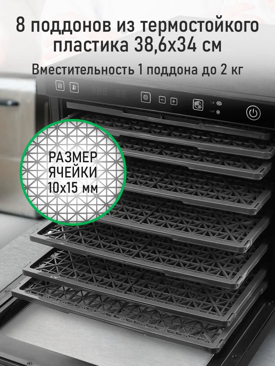 Сушилка для овощей и фруктов профессиональная 8 поддонов