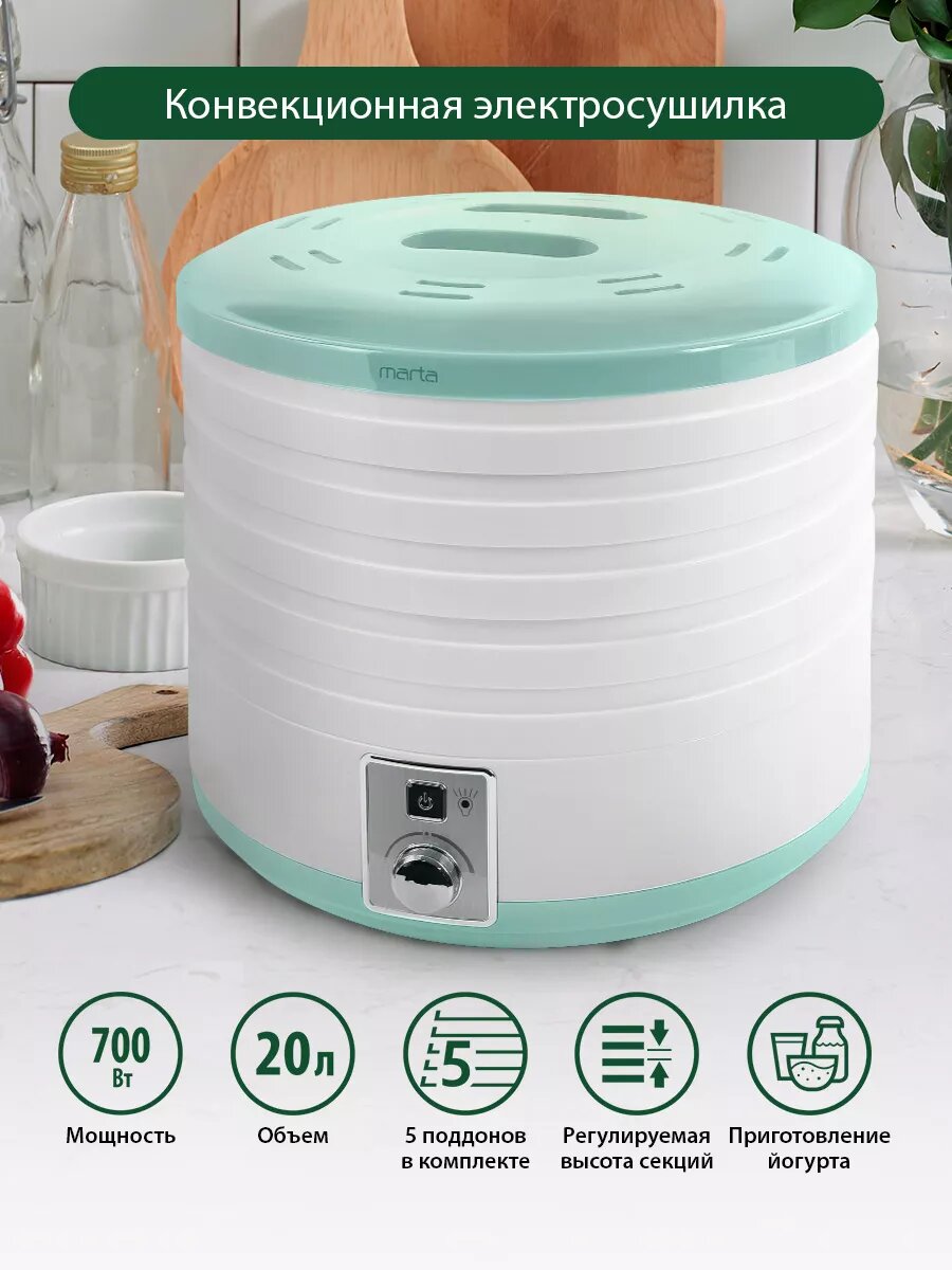 Купить Дегидратор сушилка для овощей электросушилка MARTA MT-1953 5 поддонов светлая яшма