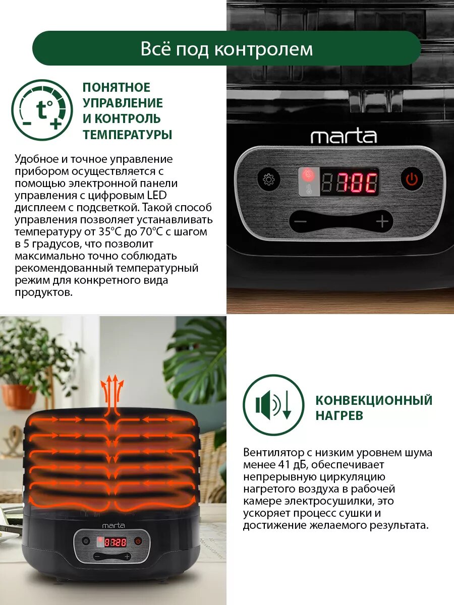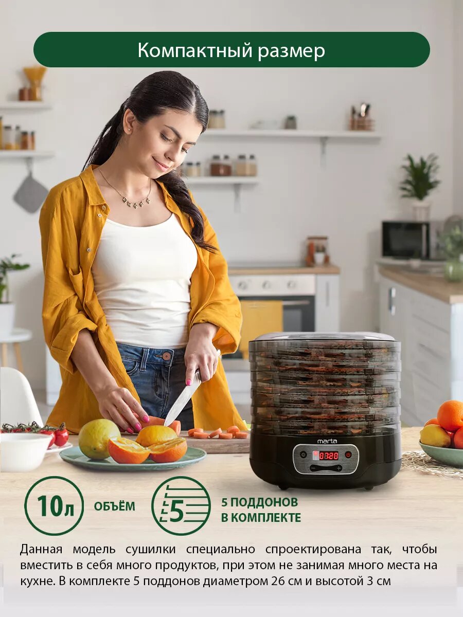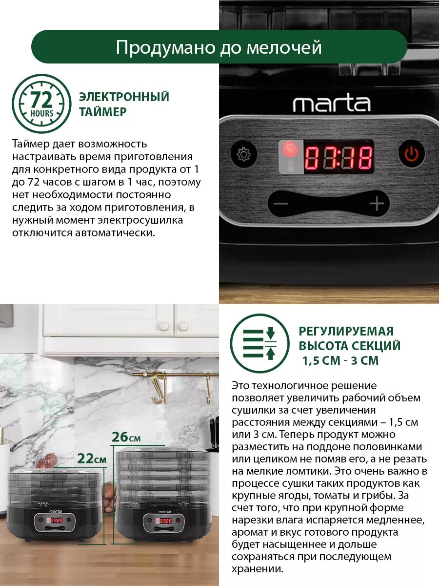 Дегидратор сушилка для овощей электросушилка MARTA MFD-505PS 5 поддонов черный жемчуг интересное: