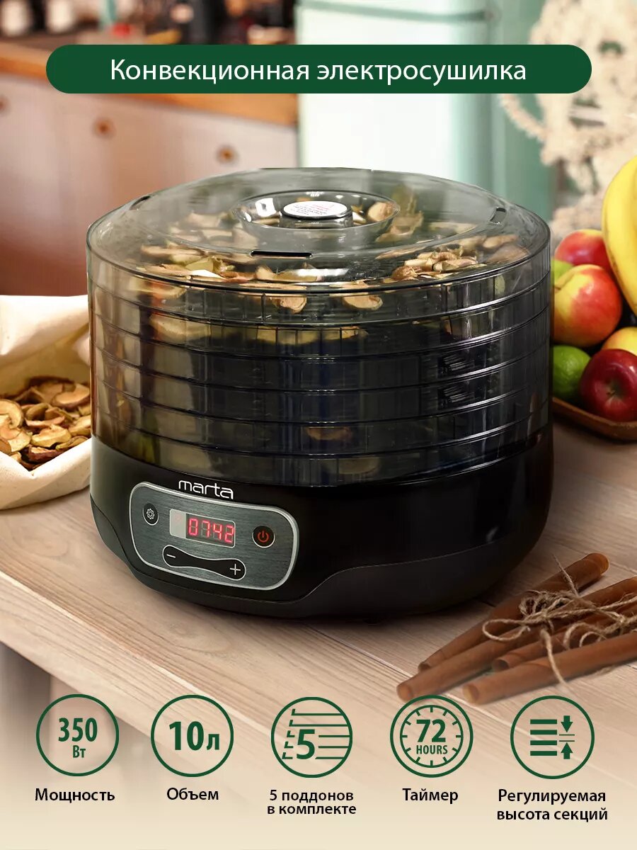 Купить Дегидратор сушилка для овощей электросушилка MARTA MFD-505PS 5 поддонов черный жемчуг