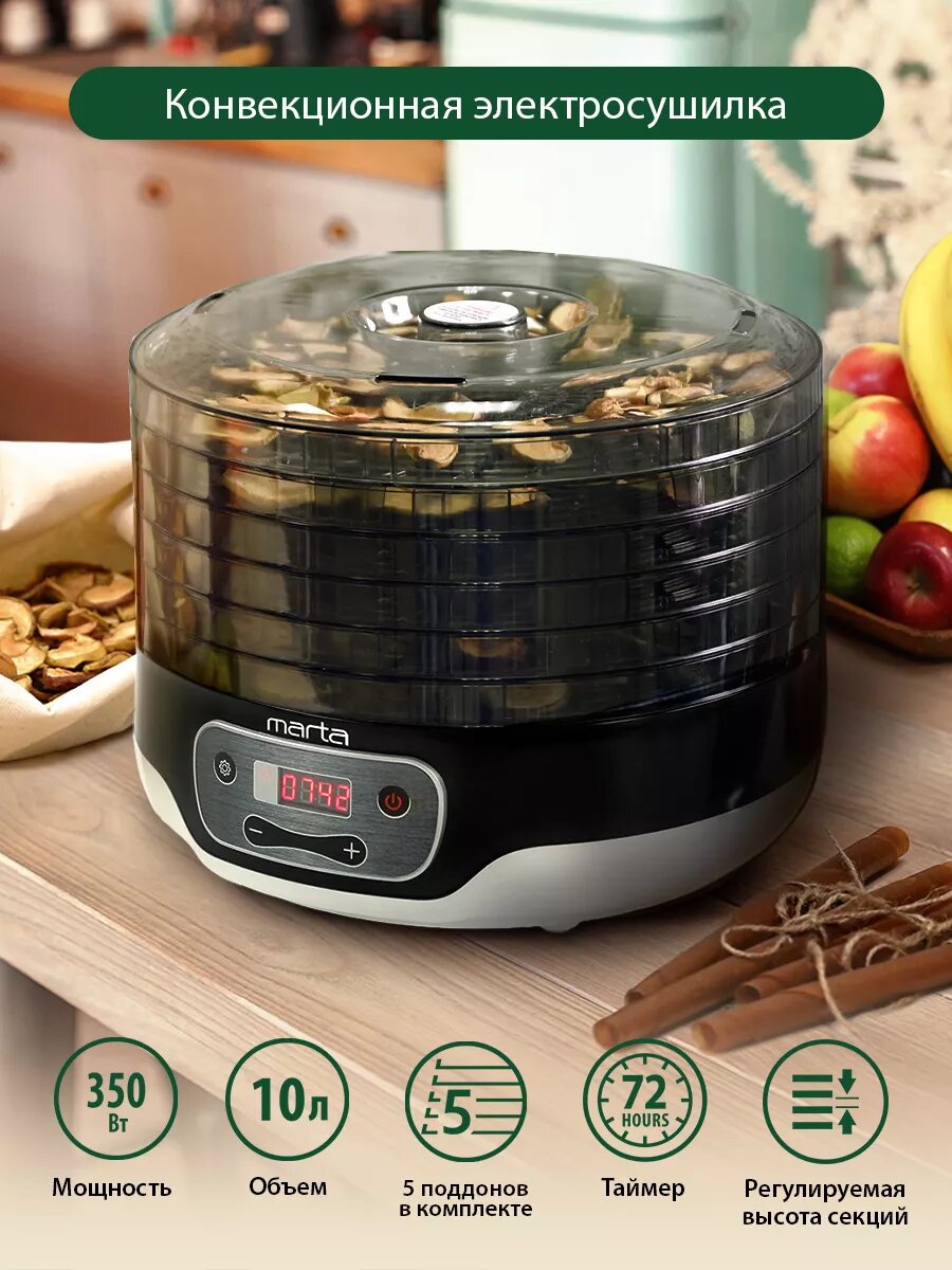 Купить Дегидратор сушилка для овощей электросушилка MARTA MFD-505PS 5 поддонов темный обсидиан