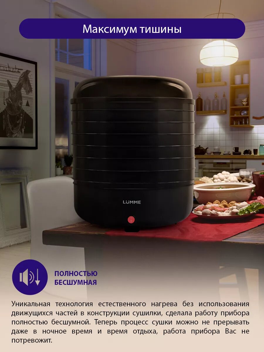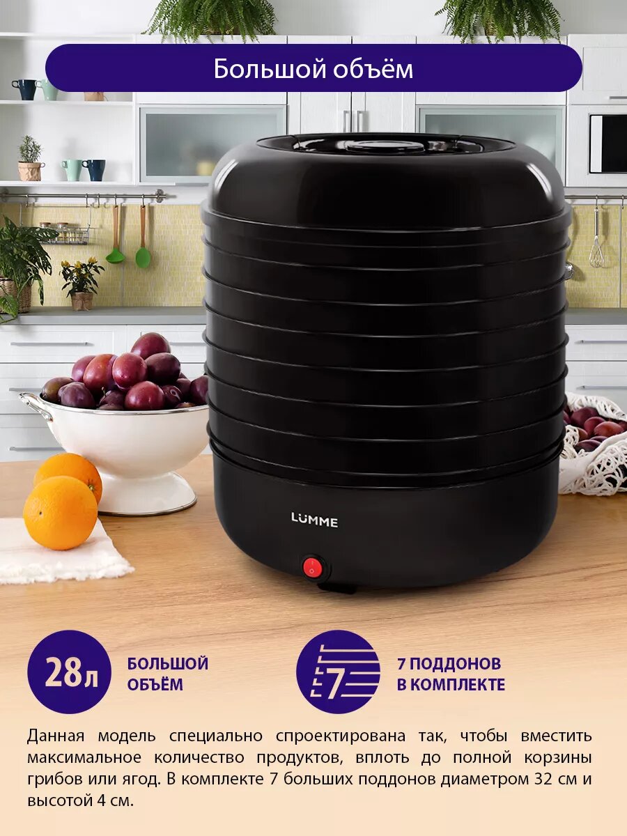 Дегидратор сушилка для овощей электросушилка LUMME LFD-107 PP 7 поддонов черный жемчуг интересное: