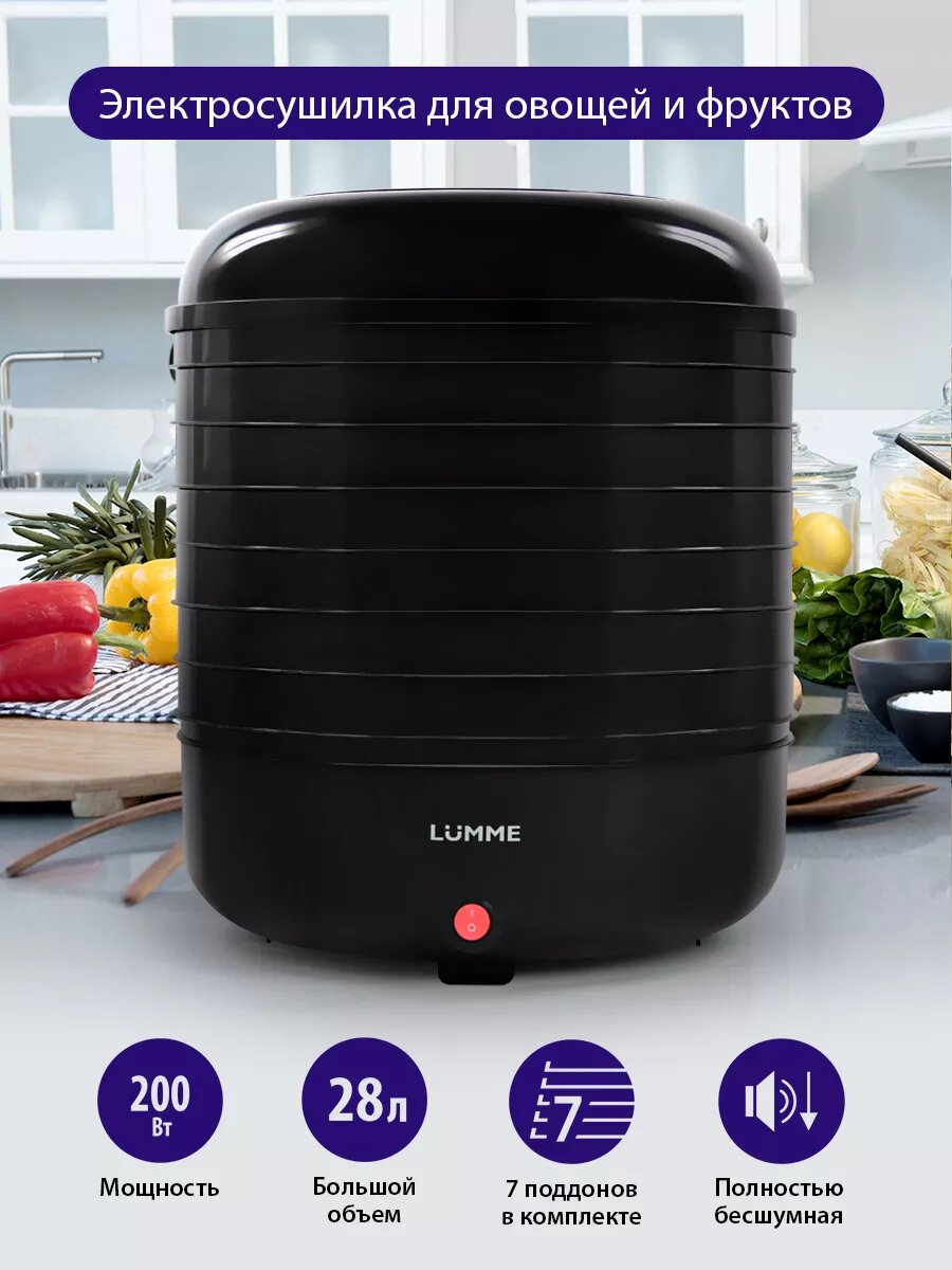 Купить Дегидратор сушилка для овощей электросушилка LUMME LFD-107 PP 7 поддонов черный жемчуг