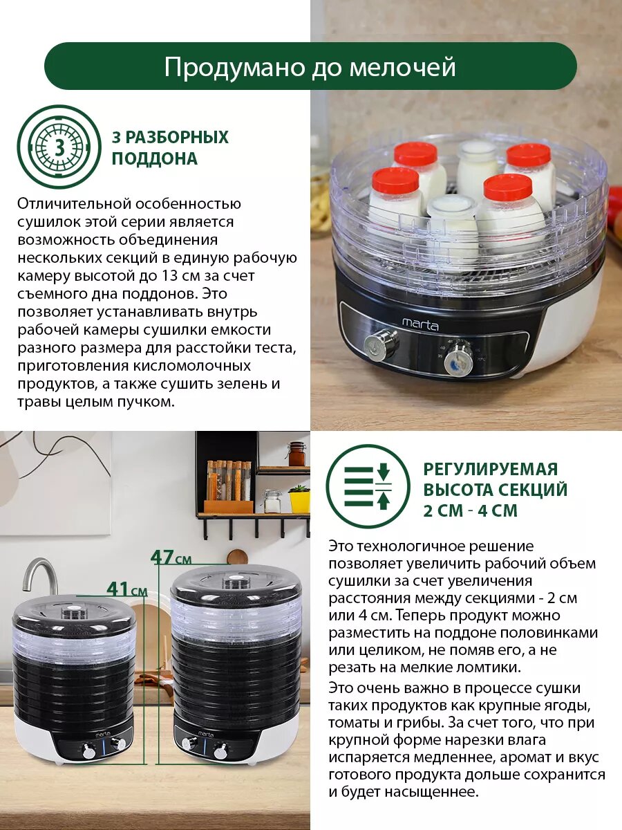 Купить Дегидратор сушилка для овощей электросушилка MARTA MFD-8010PS йогуртница 13 поддонов (10 основных + 3 для пастилы) темный обсидиан