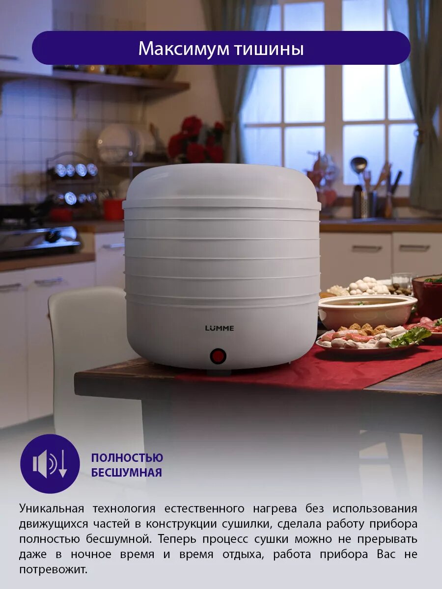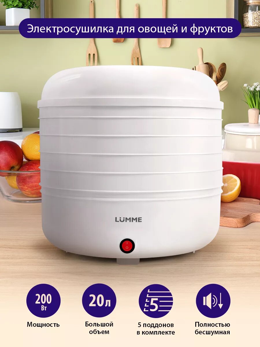 Купить Дегидратор сушилка для овощей электросушилка LUMME LFD-105 PP 5 поддонов белый жемчуг