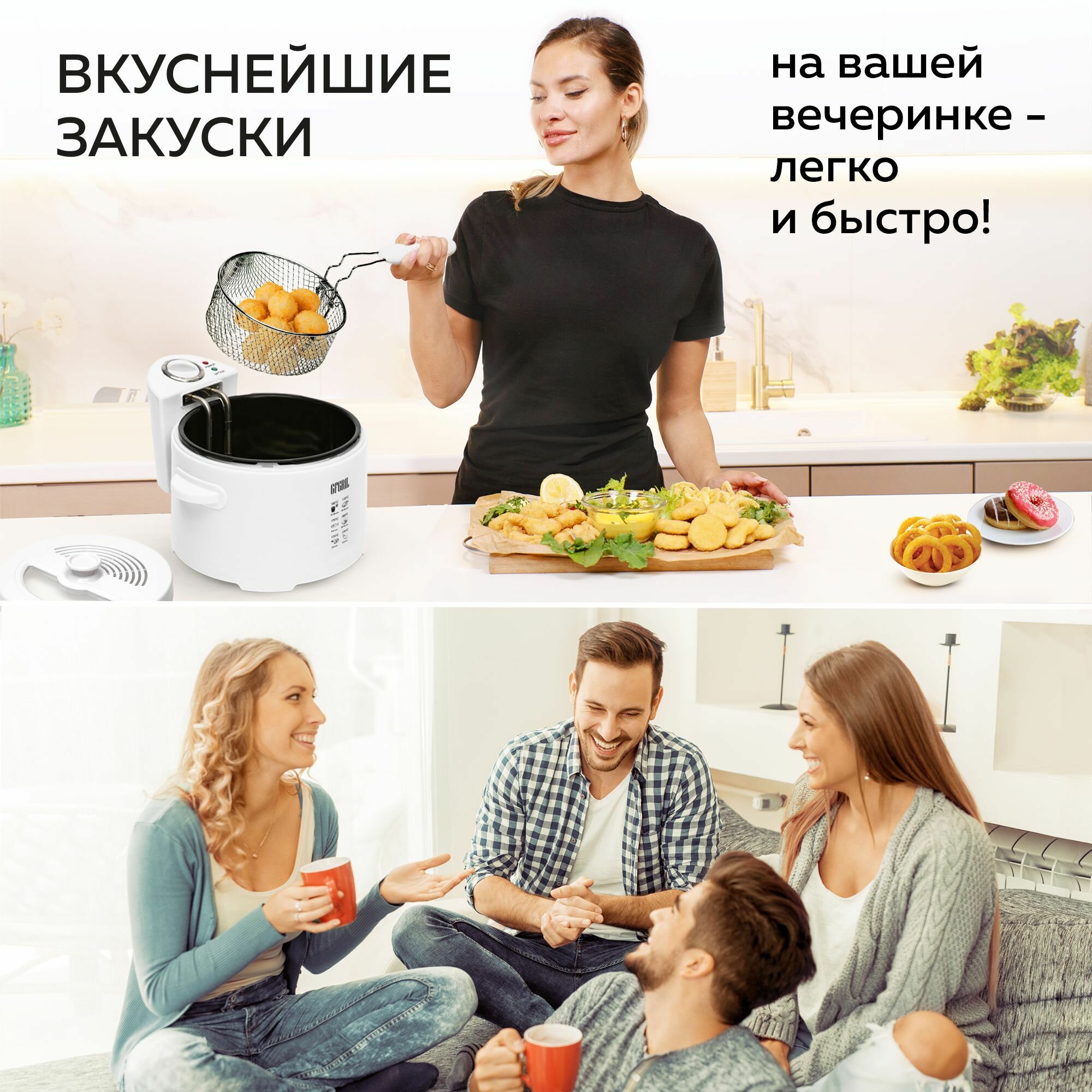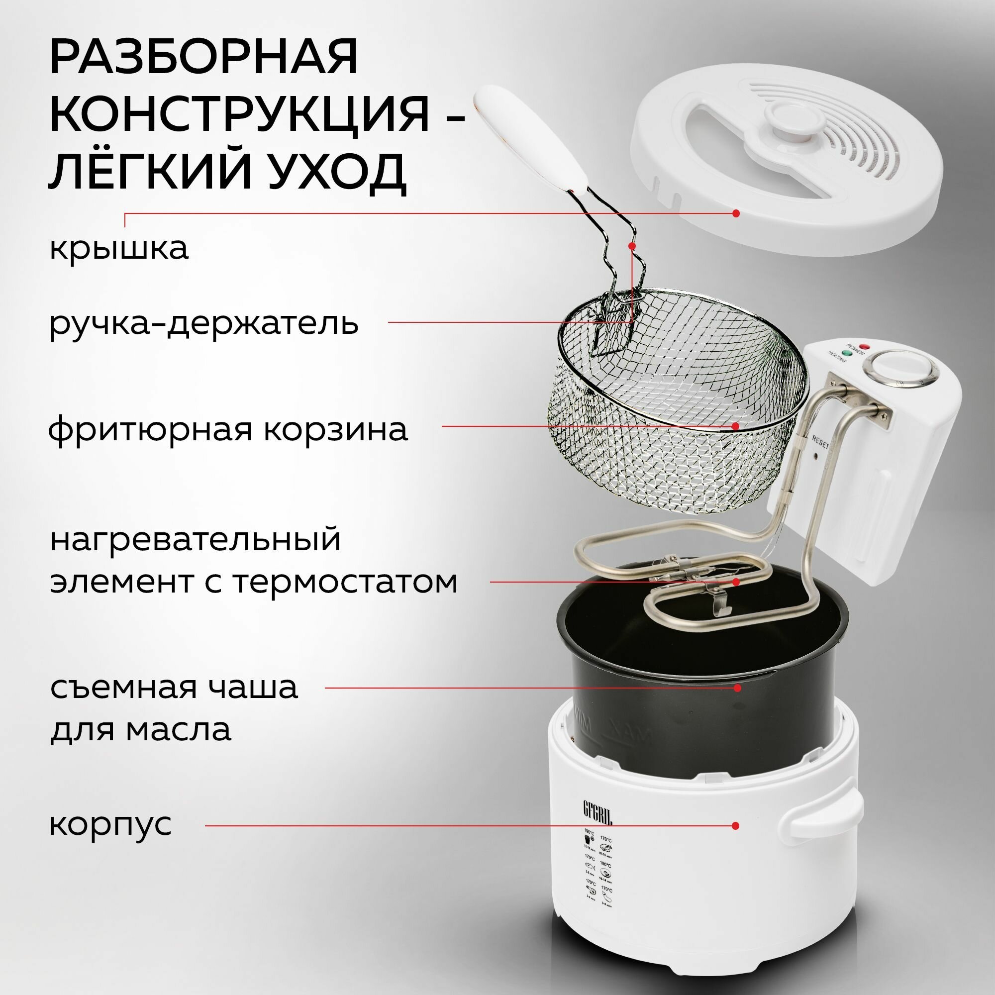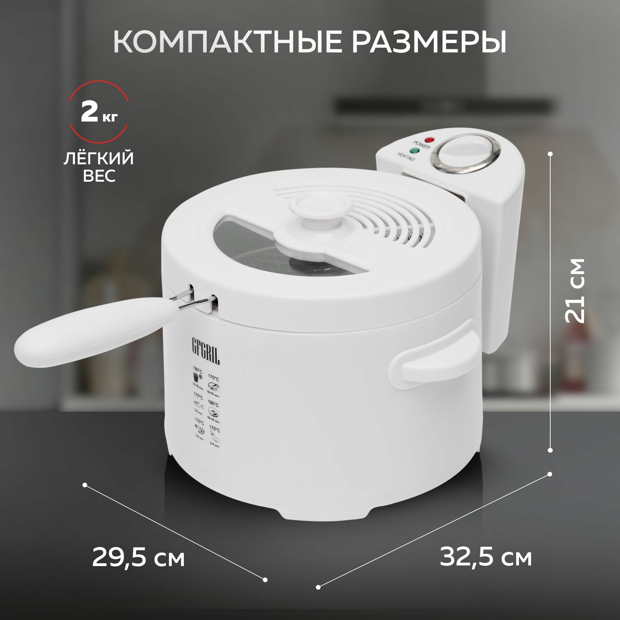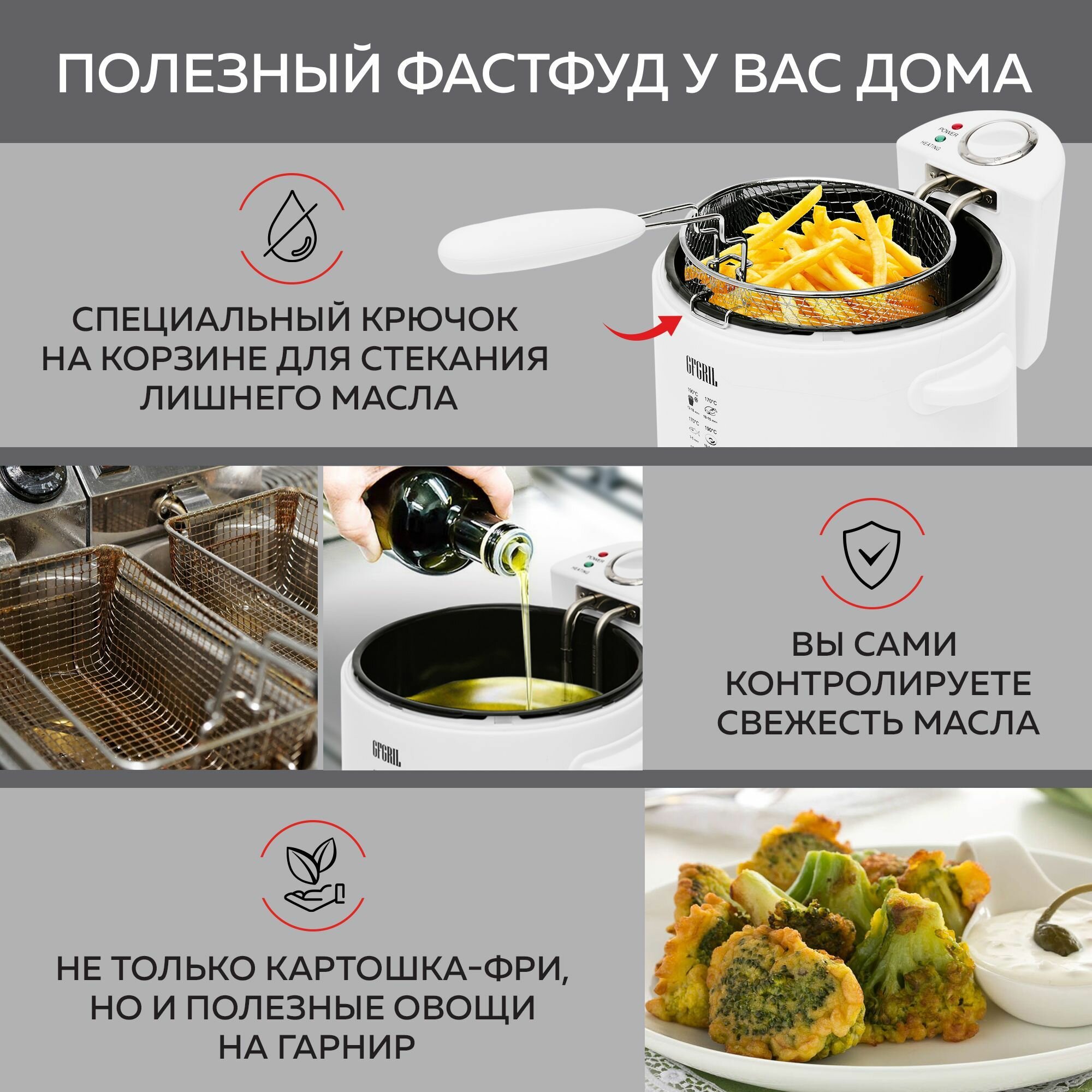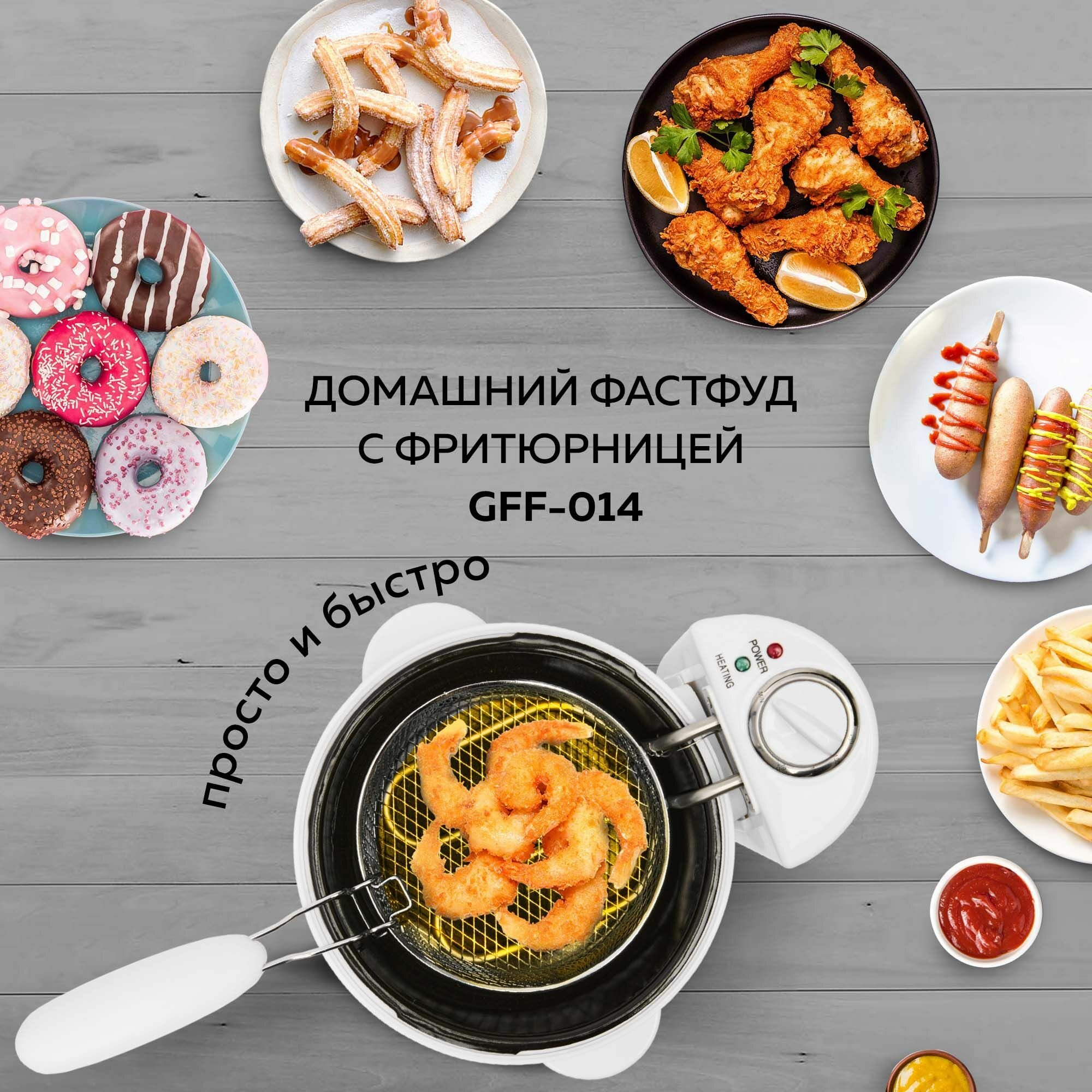 Фритюрница GFGRIL, GFF-014, электрическая, со съемной чашей, 2000Вт, белая интересное: