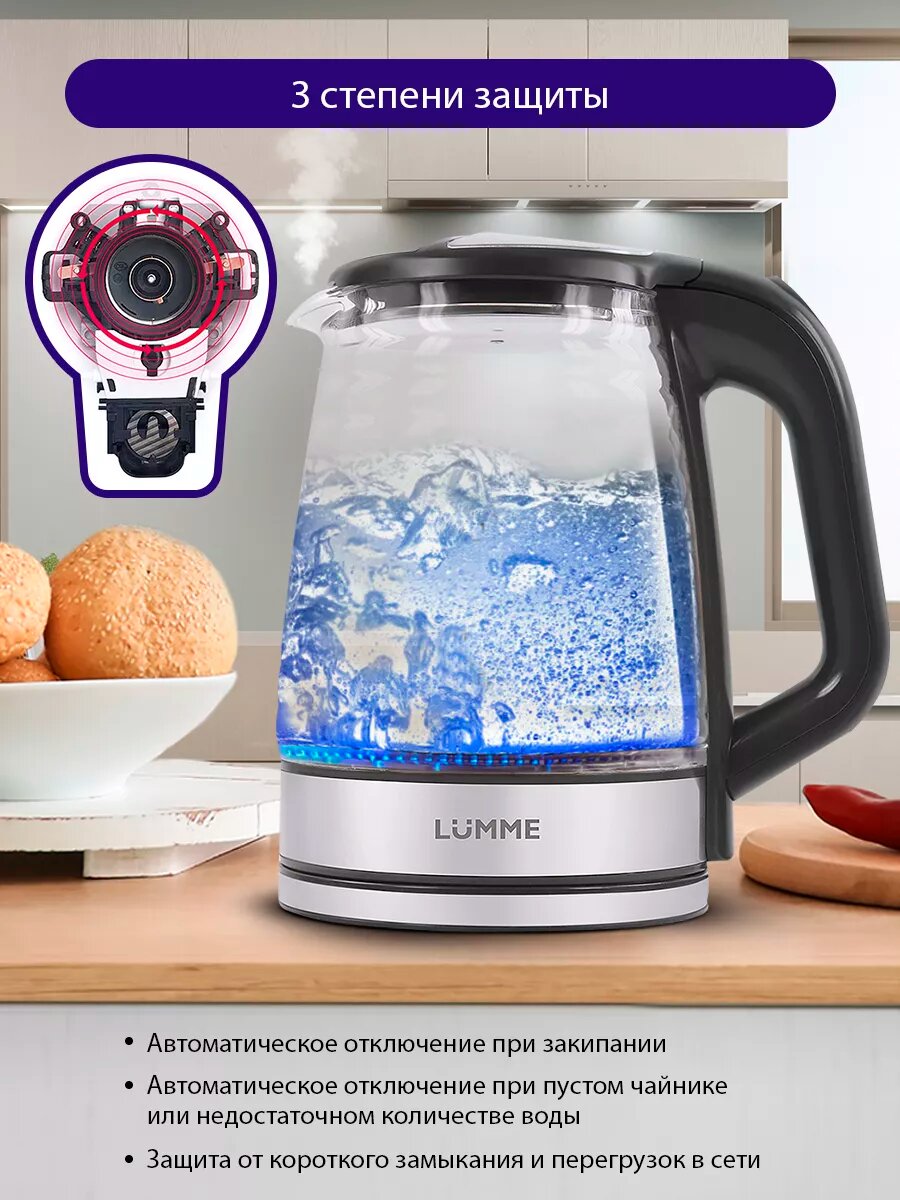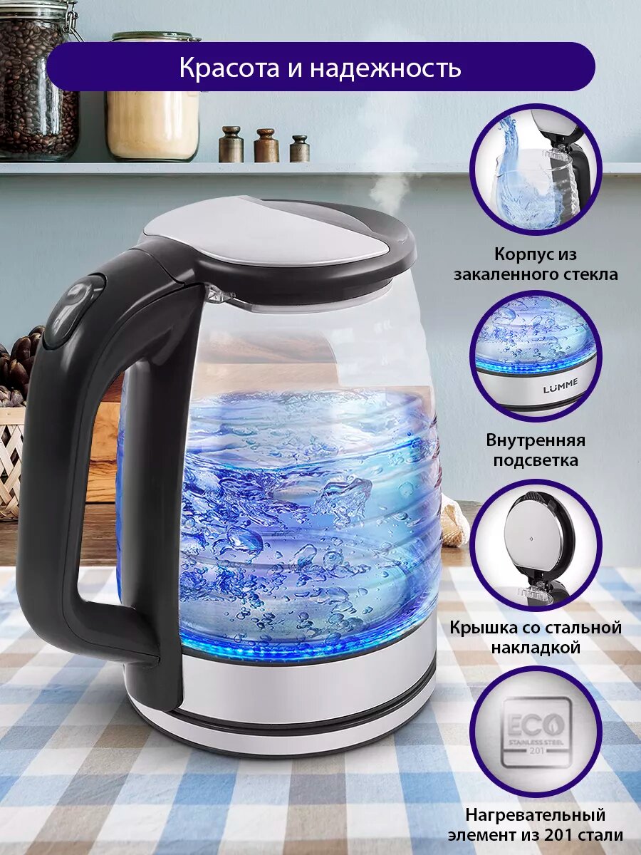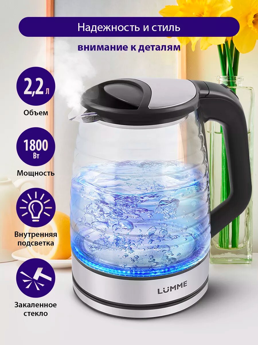 Купить Электрический чайник LUMME LU-158 черный жемчуг стеклянный с подсветкой 2.2 л