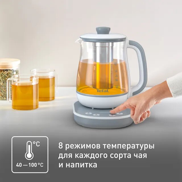 Tefal Чайник электрический TEFAL BJ551B10, стекло, 1.5 л, 1430 Вт, регулировка t°, белый
