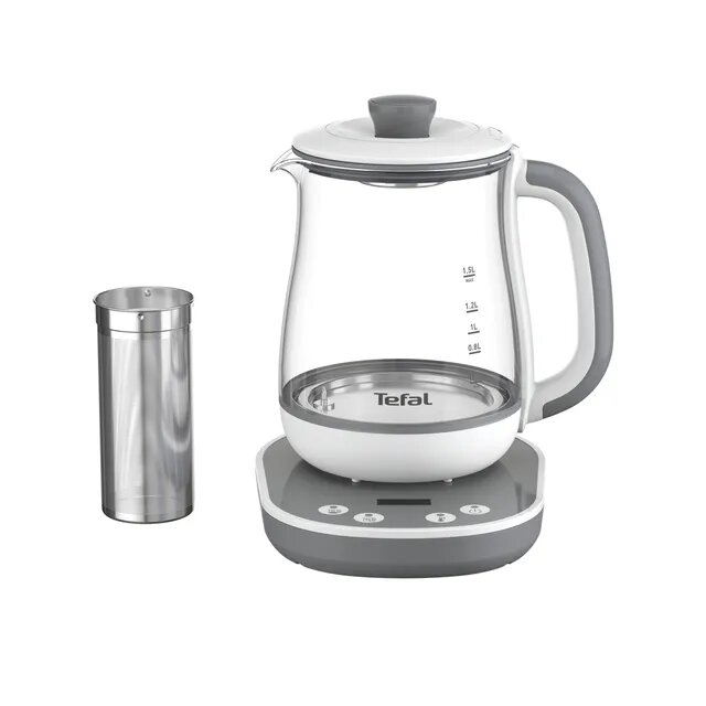 Купить Чайник Tefal BJ551B10, 1.5л, пластик/стекло, мощность 1430Вт, белый/серый