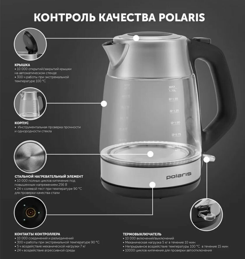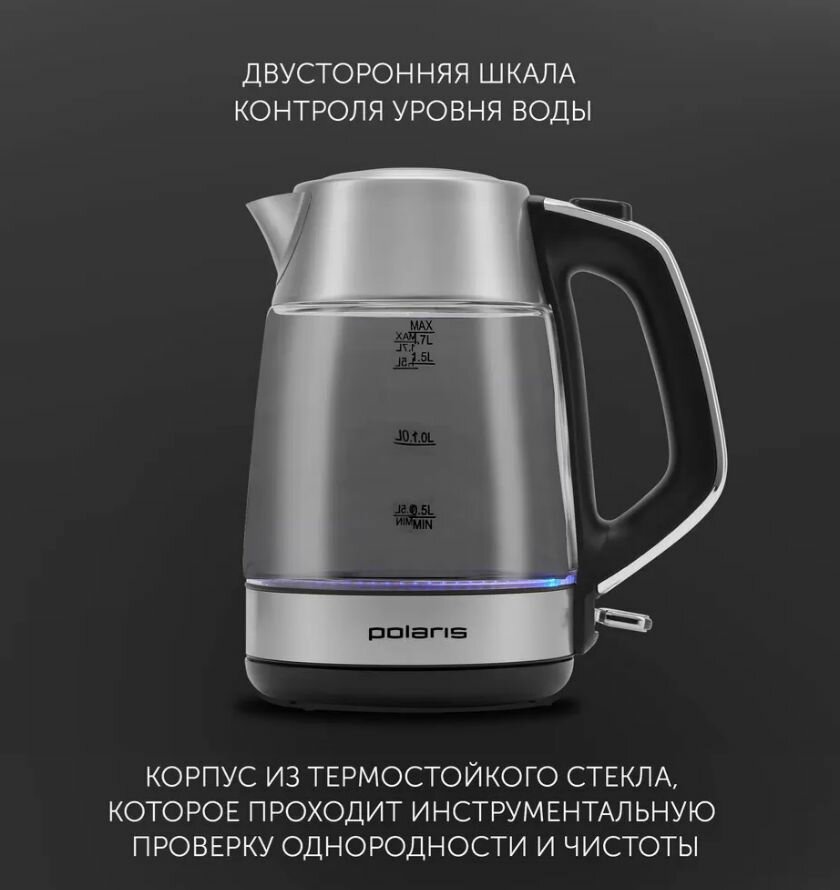Чайник электрический POLARIS PWK 1563CGL, черный и прозрачный