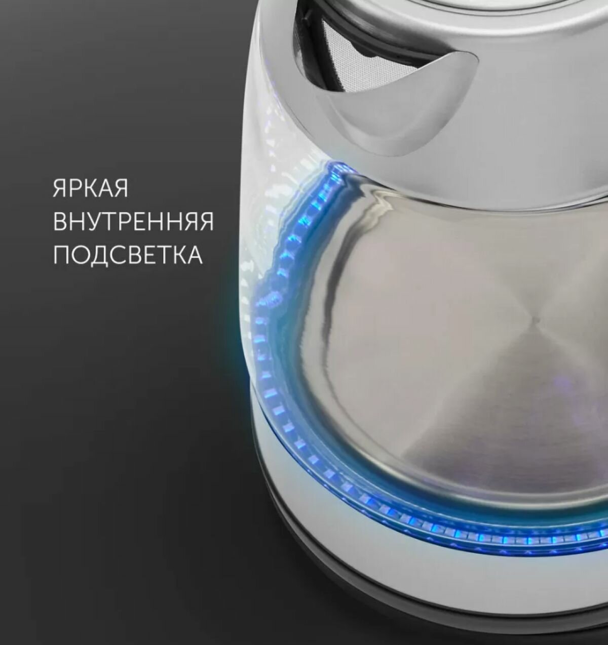СохранитьЧайник Polaris PWK 1527CGL, 2150 Вт блокировка включения без воды, стекло, подсветка интересное: