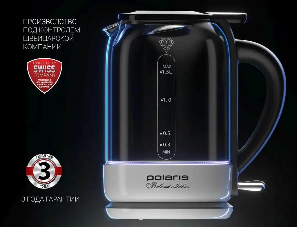 Чайник Polaris PWK 1527CGL, 2150 Вт блокировка включения без воды, стекло, подсветка