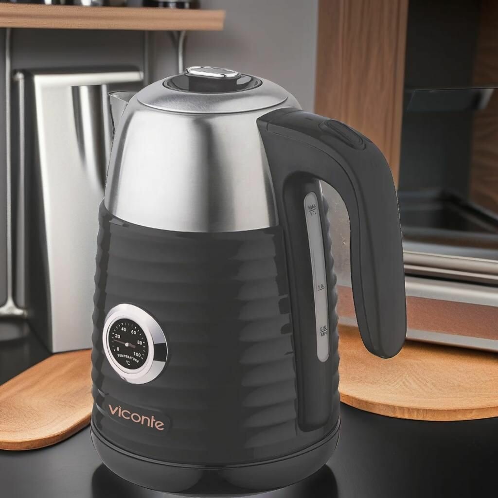 СохранитьЧайник электрический Viconte 1,7 литра с термометром 2200 Вт электрочайник для кипячения и заваривания чая кофе дома, в офисе интересное:
