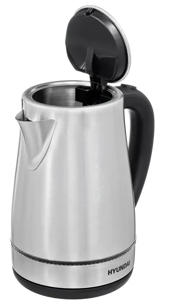 Чайник электрический Hyundai HYK-S3020, 1.7 л, 2200 Вт, серебристый матовый/черный
