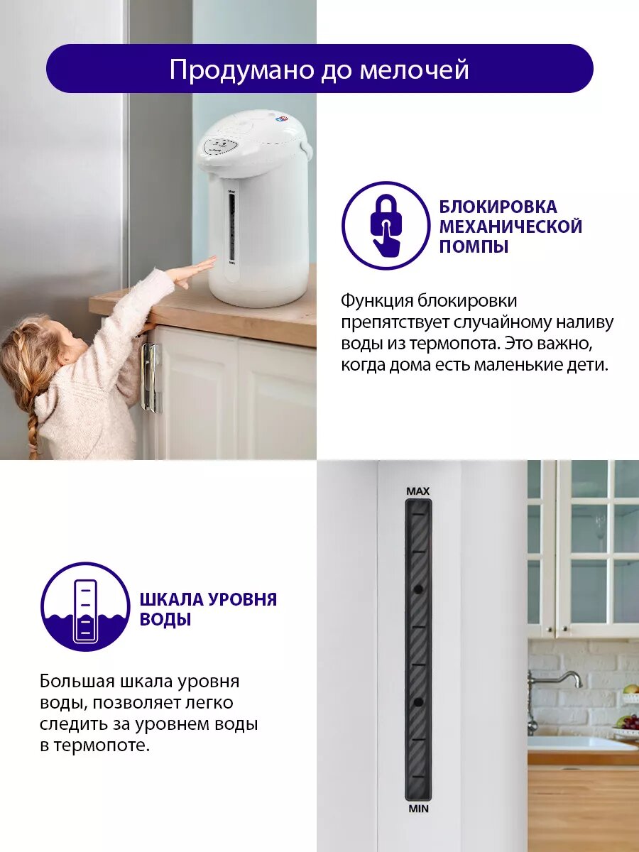 Термопот LUMME LU-3835 белый жемчуг электрический, ручная помпа 4 л