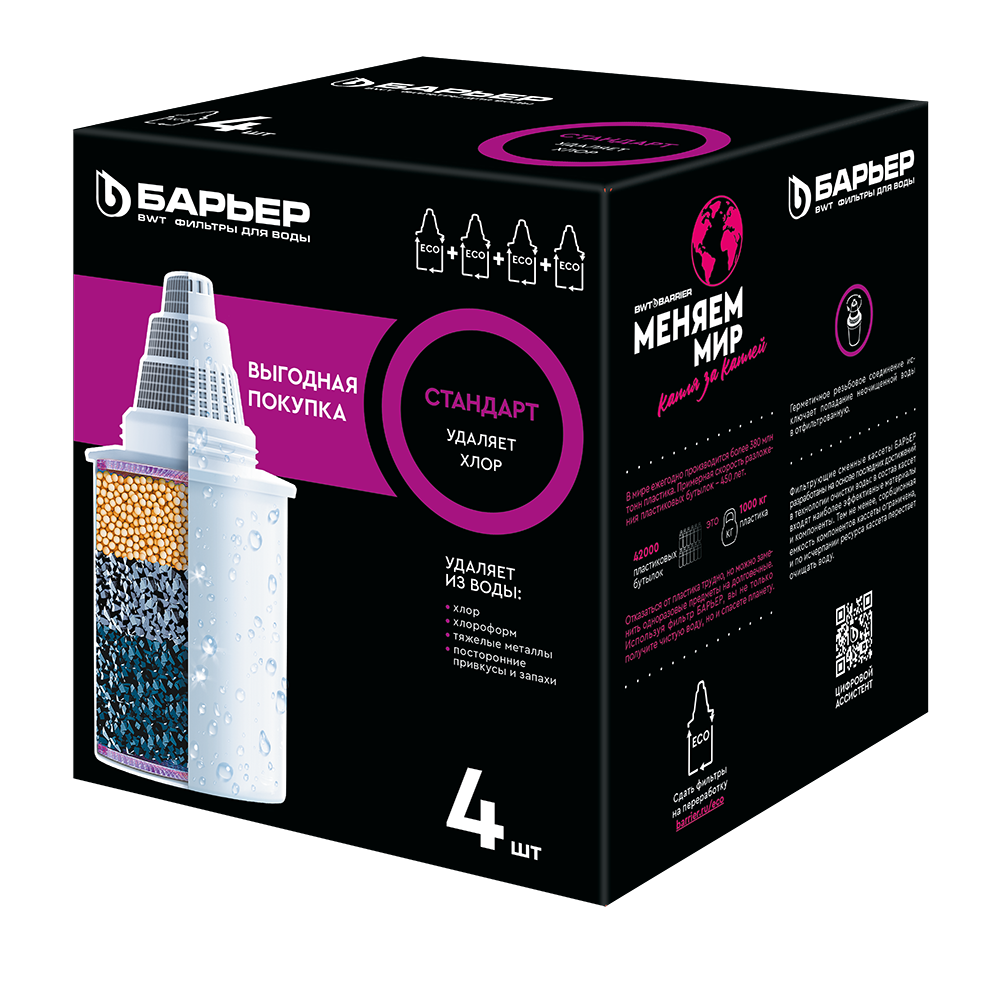Купить Комплект кассет для фильтра-кувшина "Барьер Стандарт", против хлора, 4шт