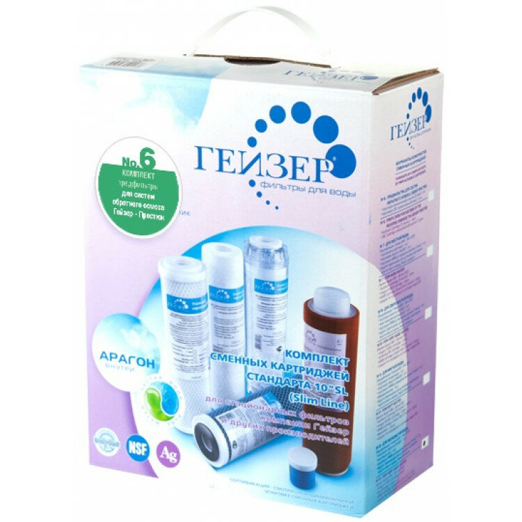 | Дополнительная информация | предназначен для фильтра Гейзер-Классик (для очистки жесткой воды); комплектация: РР5 10SL, Арагон 2, БАФ, муфта уплотнительная тип "В" |