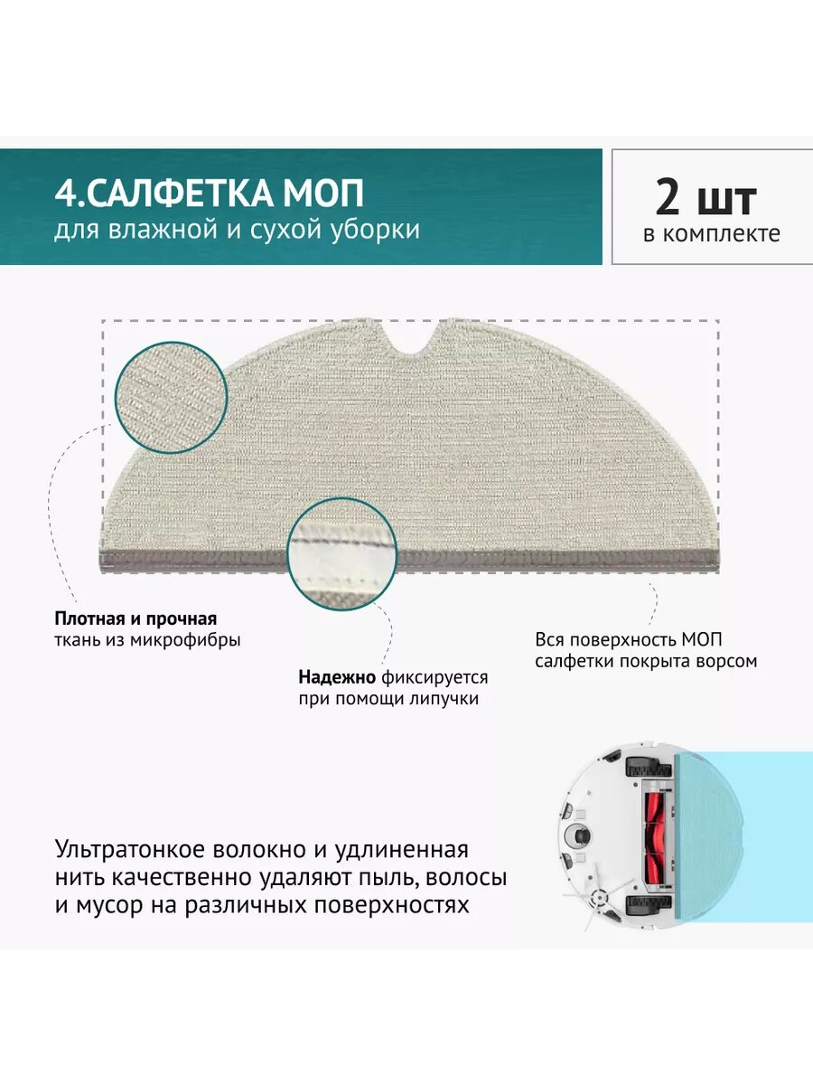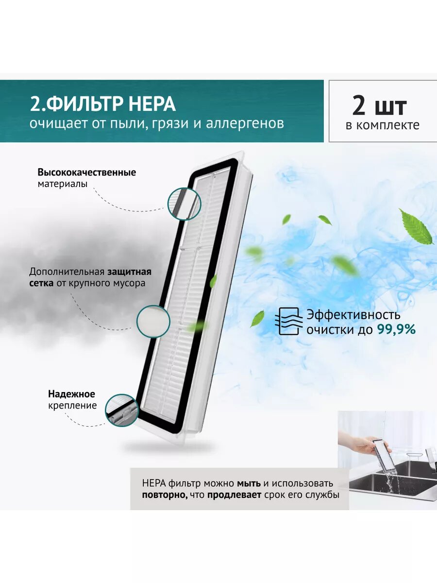 | Плюсы: | Нера-фильтр вставляется туго, по сравнению с оригинальным (Roborock -s5max) . Салфетка немного больше оригинальной, но не критично |