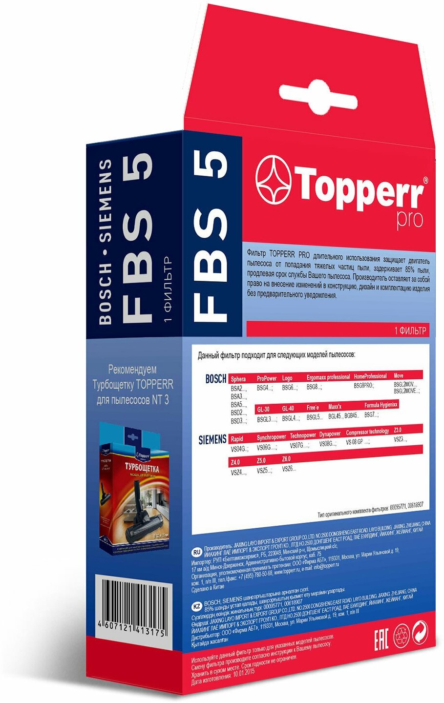 Сменный фильтр Topperr FBS 5, для пылесосов Bosch, Siemens