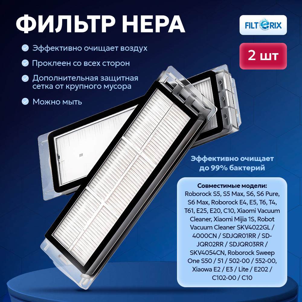 Комплект фильтров для робота пылесоса Xiaomi S5, S5 Max, S6 Pure, S6 Max, Roborock E4, Vacuum Cleaner, S1,T6,T4,T61, E25,S50, S51, E25, E20, C10; 2 шт