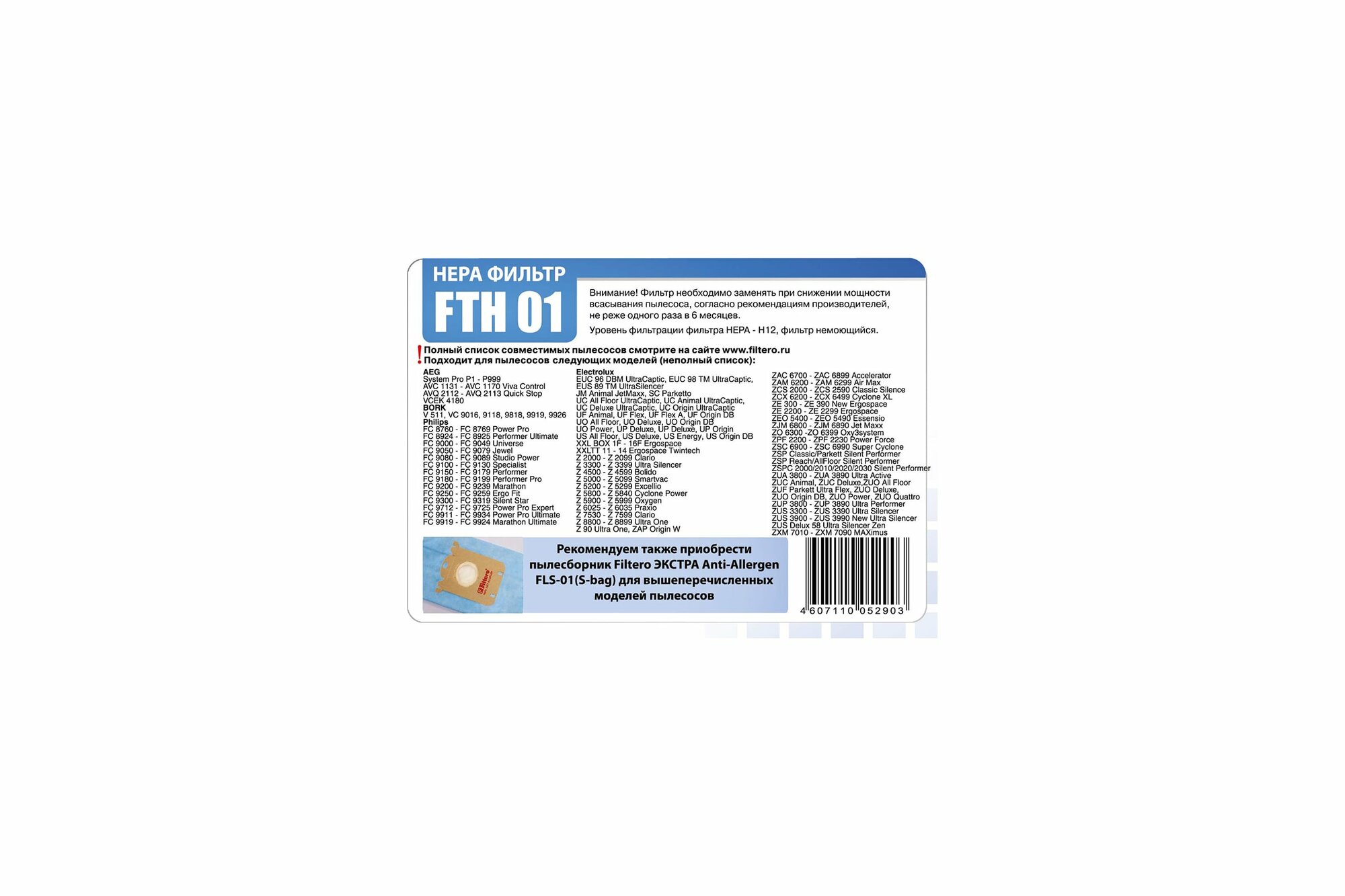 HEPA фильтр Filtero FTH 01 для пылесосов PHILIPS, ELECTROLUX, AEG, BORK