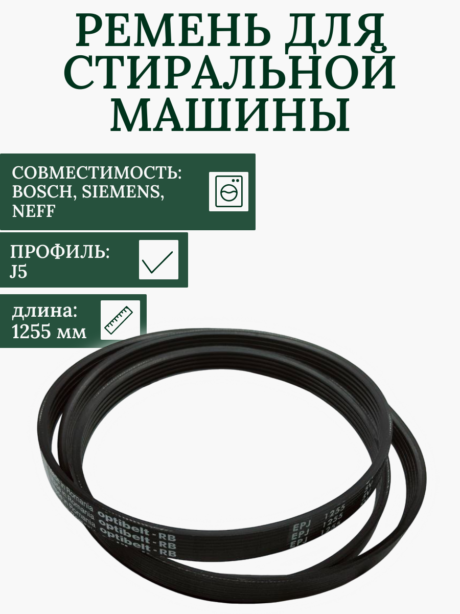 Ремень для стиральной машины Bosch, Siemens, NEFF/ L-1255 J5 EPJ 72125500 интересное: