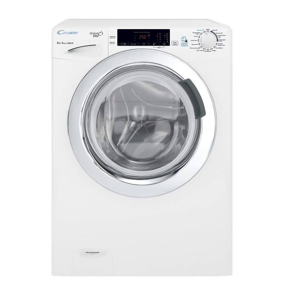 Стиральная машина CANDY/ Узкая стиральная машина, 85x60x44, GrandO Vita Smart Touch, 16 программ, загрузка фронтальная, 8кг, до 1200 об/мин при отжиме, цифровой дисплей, функция пара, белая