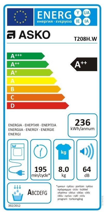 Сушильная машина Asko T208H. W, белый интересное: