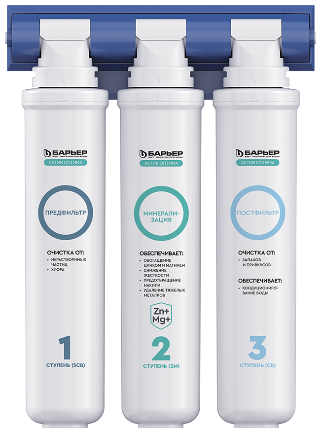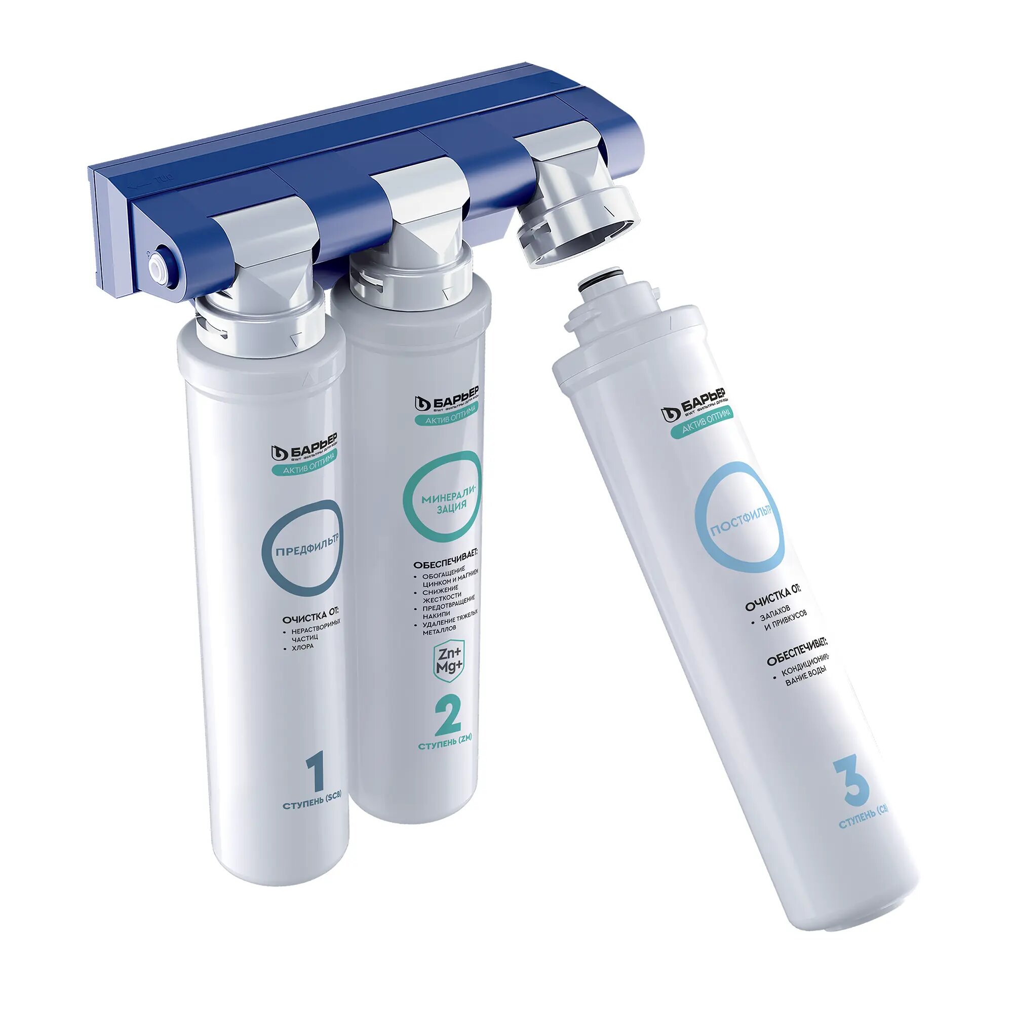 Фильтр под мойку для очистки воды трехступенчатый, быстросъемный БАРЬЕР Актив Оптима Сила Иммунитета, обогащает цинком