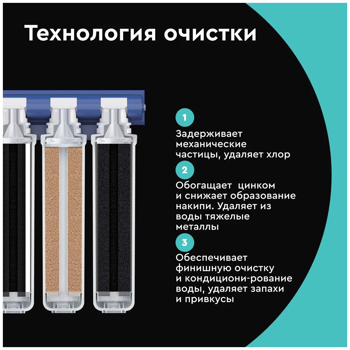 | Плюсы: | Компактный. Простота установки и сборки. Прекрасно очищает воду и устраняет привкусы. Быстросъёмные картриджи. |