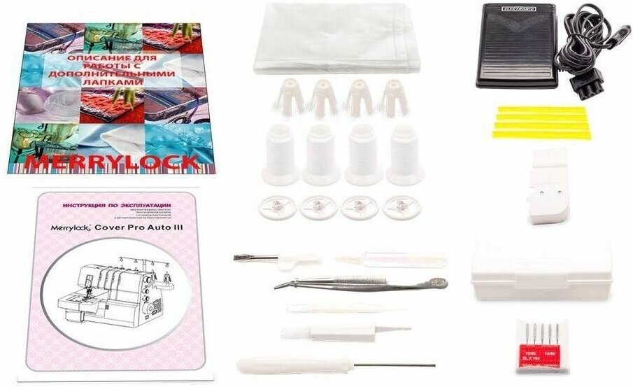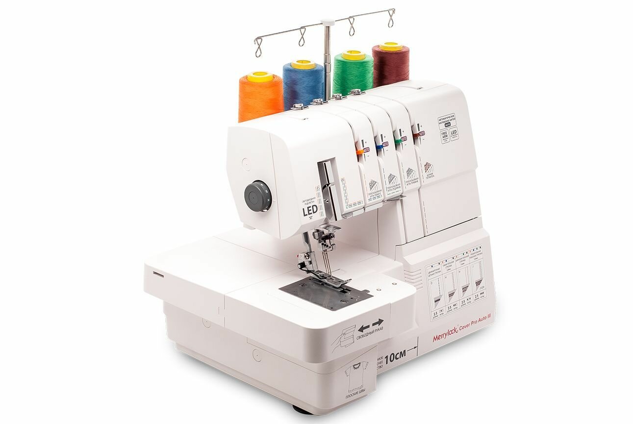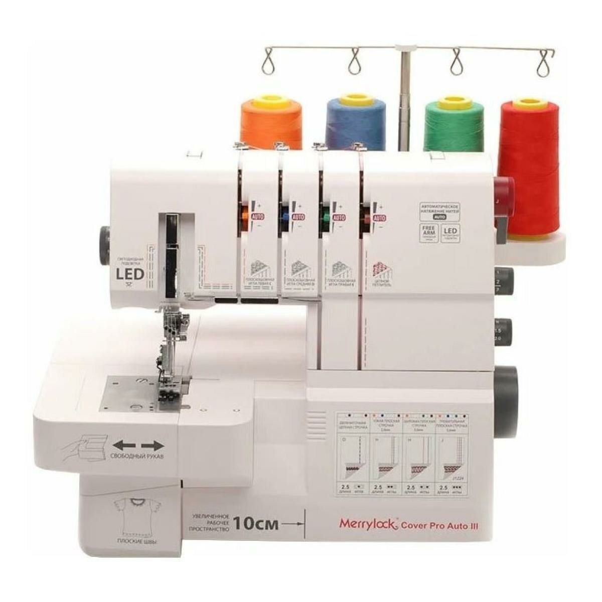 Машина швейная Merrylock Cover Pro Auto III, 1100ст/мин, 4 нити, LED-подсветка интересное: