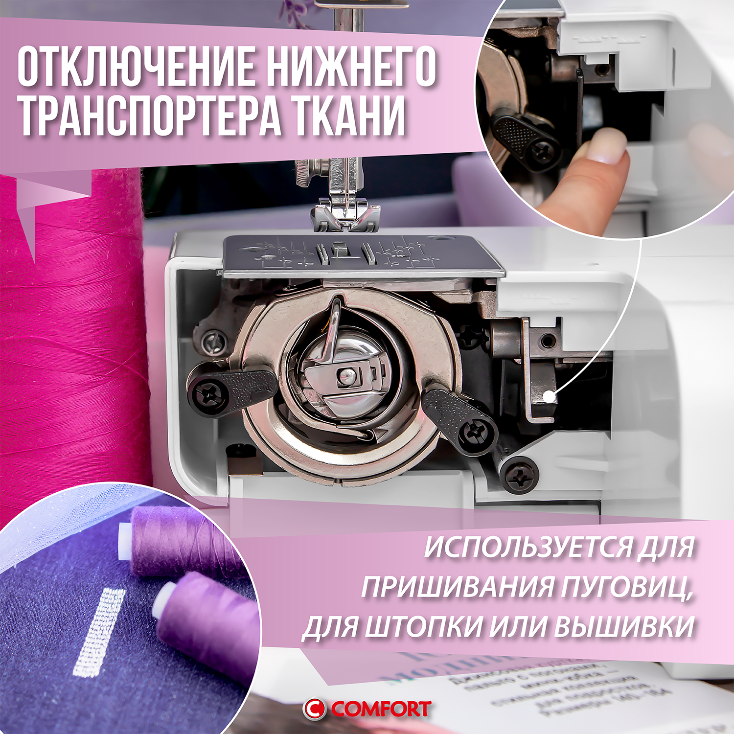 Швейная машинка Comfort 32, 24 операции, петля полуавтомат, вертикальный челнок интересное:
