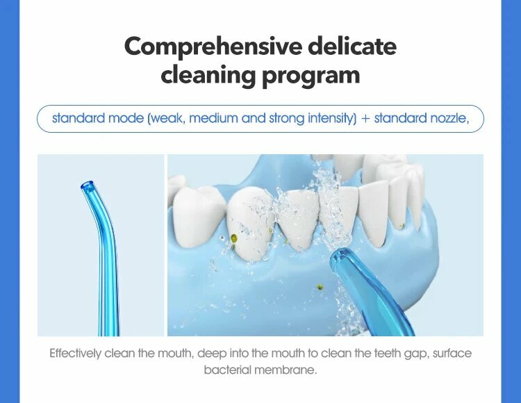 | Насадки | для струйной чистки / для чистки языка / пародонтологическая (для десен) / ортодонтическая (для брекетов) |