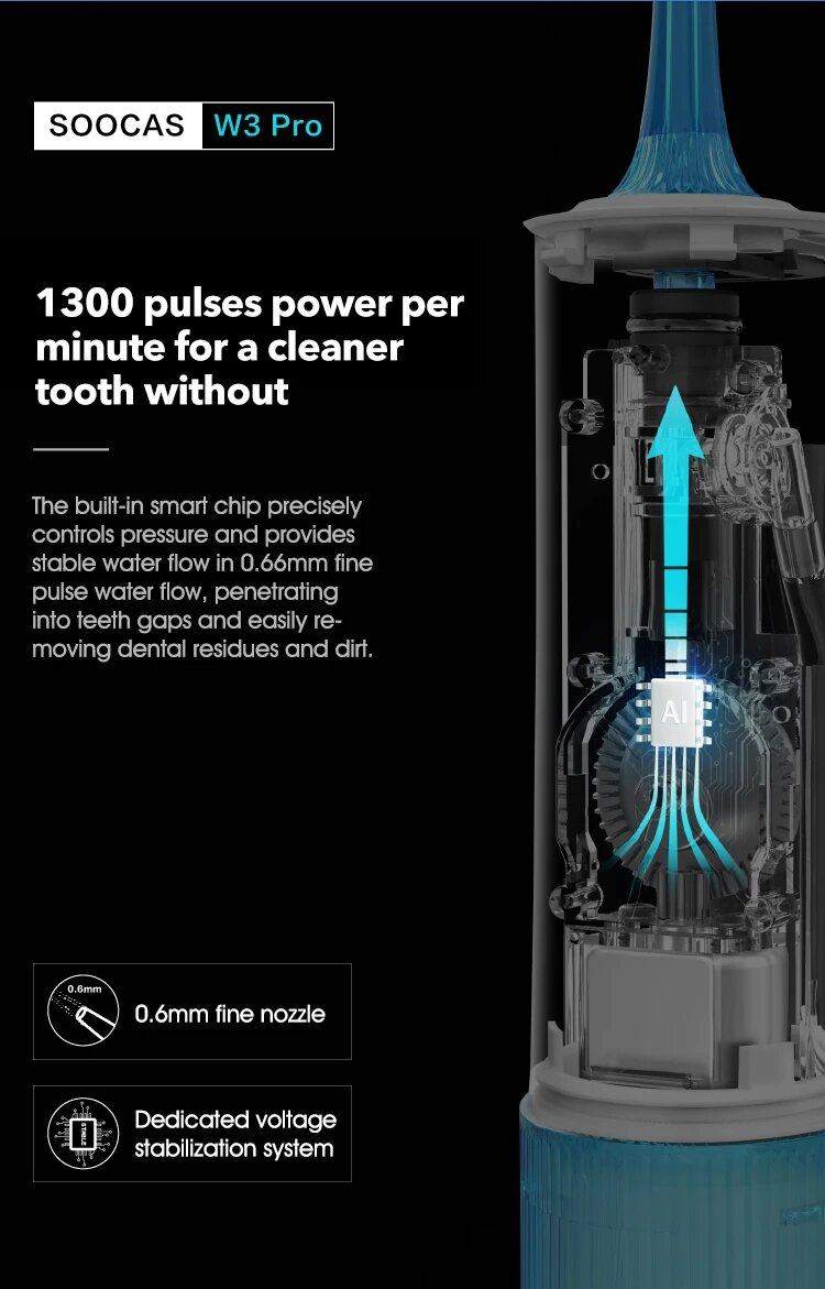 Купить Ирригатор полости рта SOOCAS W3 Pro, 4 типа насадок, цвет голубой, blue