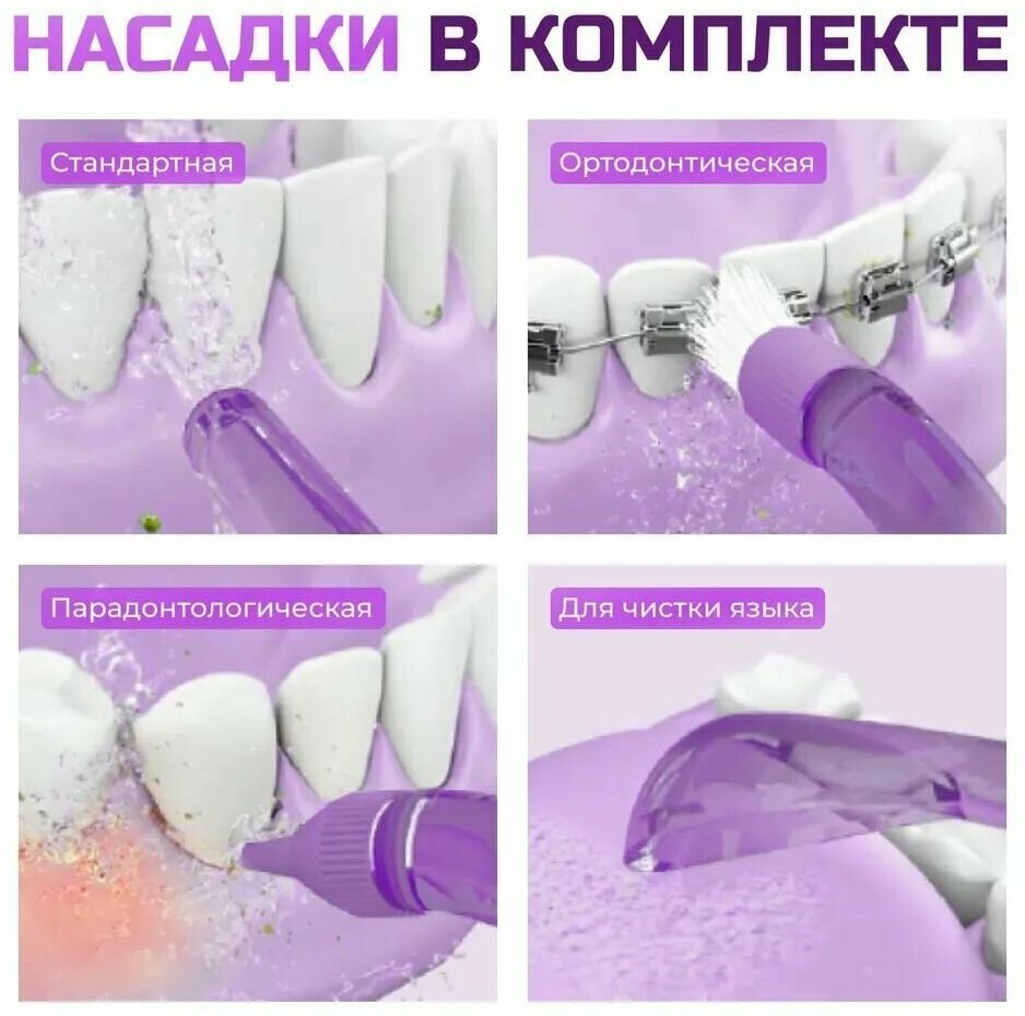 | Насадки | для струйной чистки / для чистки языка / пародонтологическая (для десен) / ортодонтическая (для брекетов) |