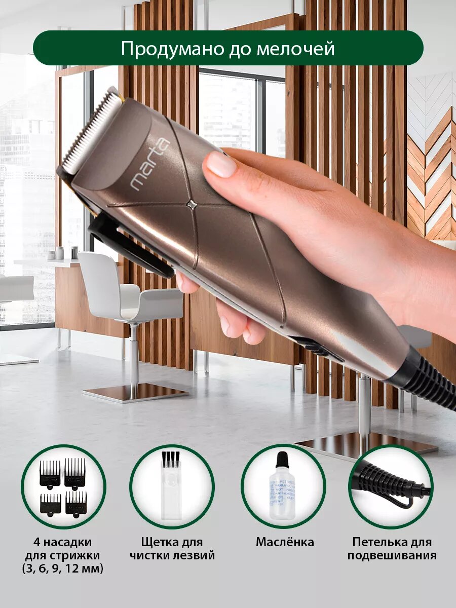 Ниже Вы можете прочитать отзывы на Машинка для стрижки MARTA MT-2220, лезвия титан, керамические, 4 настройки длины, черный, ознакомится с подробными характеристиками, посмотреть интересные обзоры и фотографии на Машинка для стрижки MARTA MT-2220, лезвия титан, керамические, 4 настройки длины, черный.