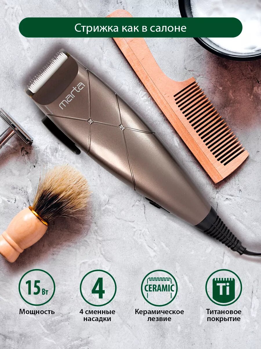 Купить Машинка для стрижки MARTA MT-2220, лезвия титан, керамические, 4 настройки длины, черный