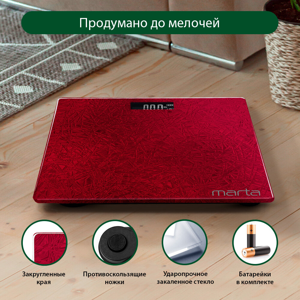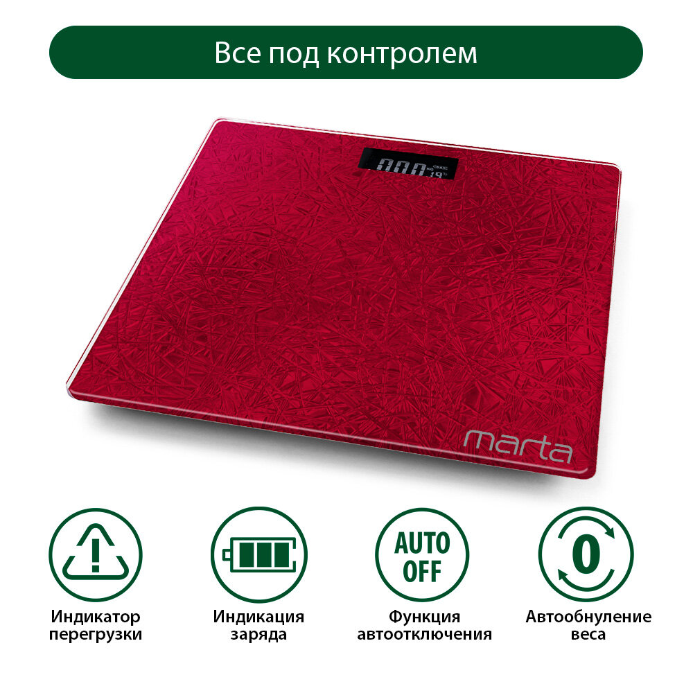 Marta MT-1610 бордовый гранат весы напольные сенсор .