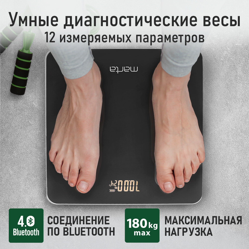 Весы напольные умные MARTA MT-1606 серый графит интересное: