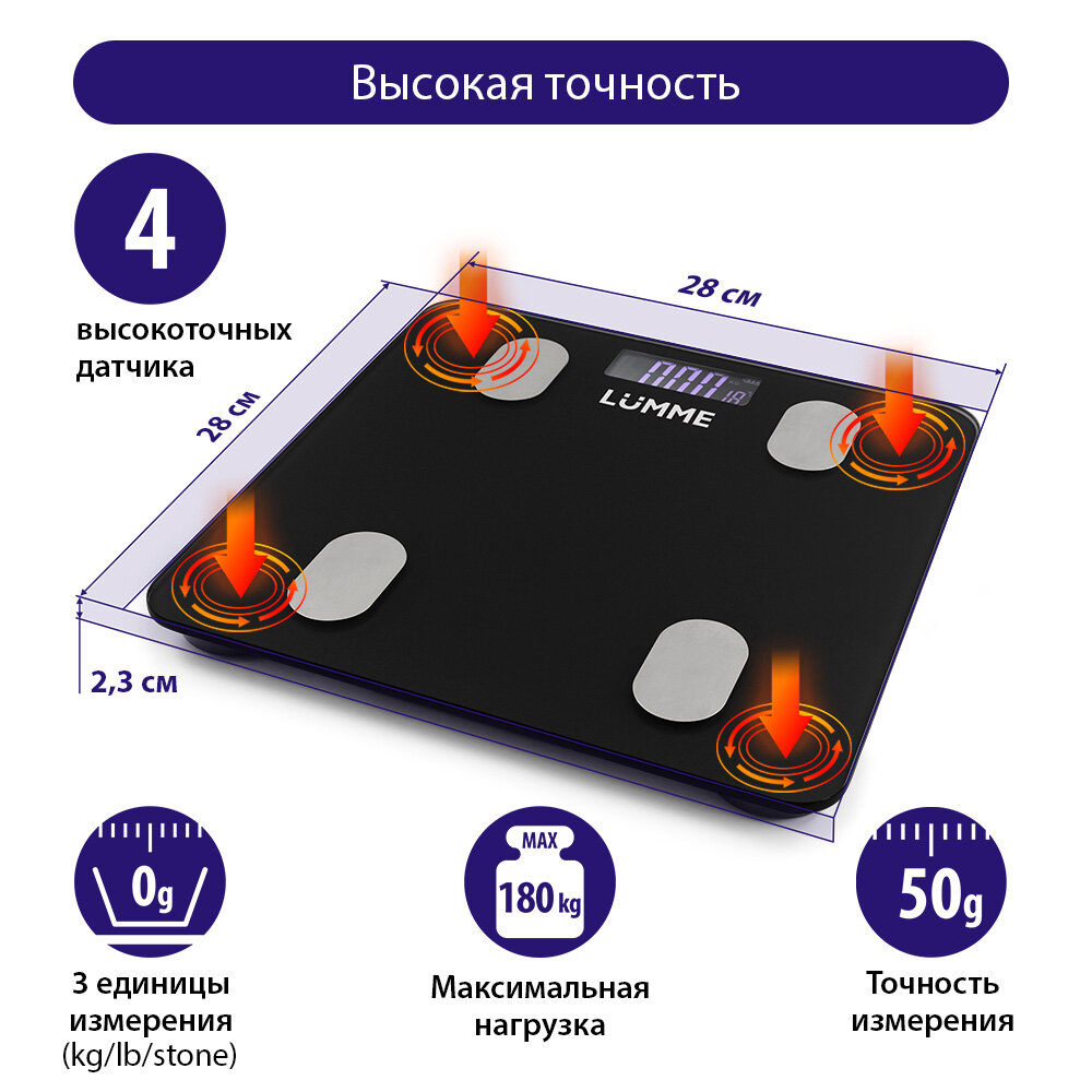 LUMME LU-1334 черный жемчуг LCD весы напольные диагностические, умные с Bluetooth