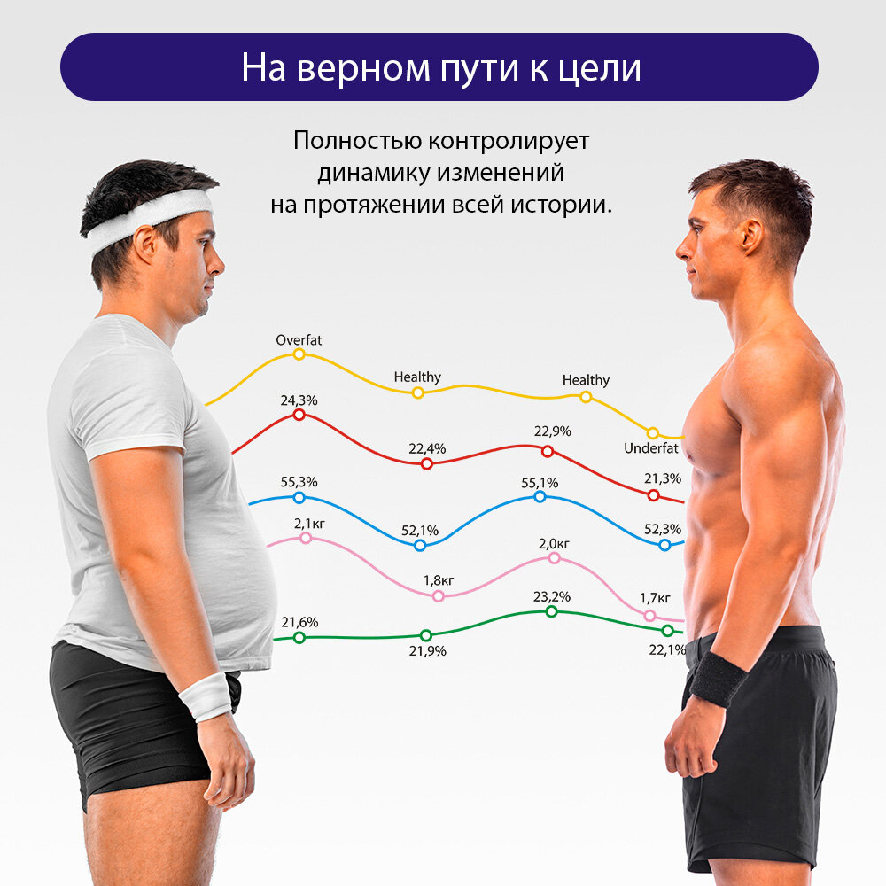 | Дополнительные функции | определение доли жировой ткани / определение доли мышечной ткани / определение доли воды / определение доли костной ткани / расчет ИМТ (BMI) / измерение температуры воздуха / постановка цели / память |