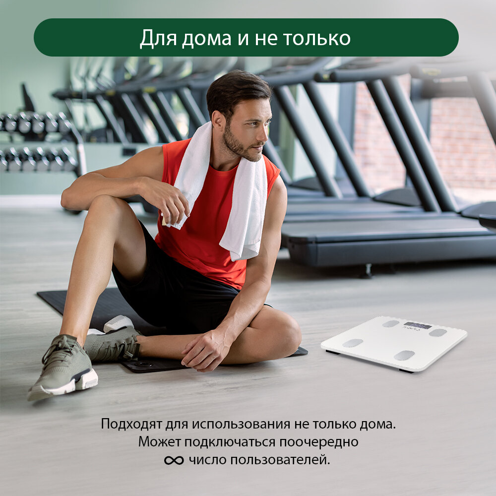определение доли жировой ткани / определение доли мышечной ткани / определение доли воды / определение доли костной ткани / расчет ИМТ (BMI) / измерение температуры воздуха / постановка цели / память