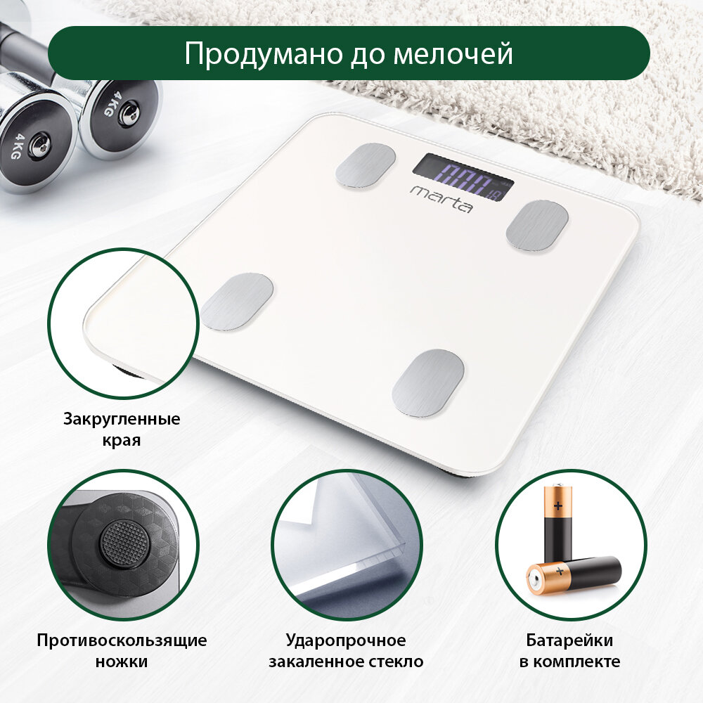 Умные весы MARTA MT-1683, Bluetooth, память на 8 пользователей интересное:
