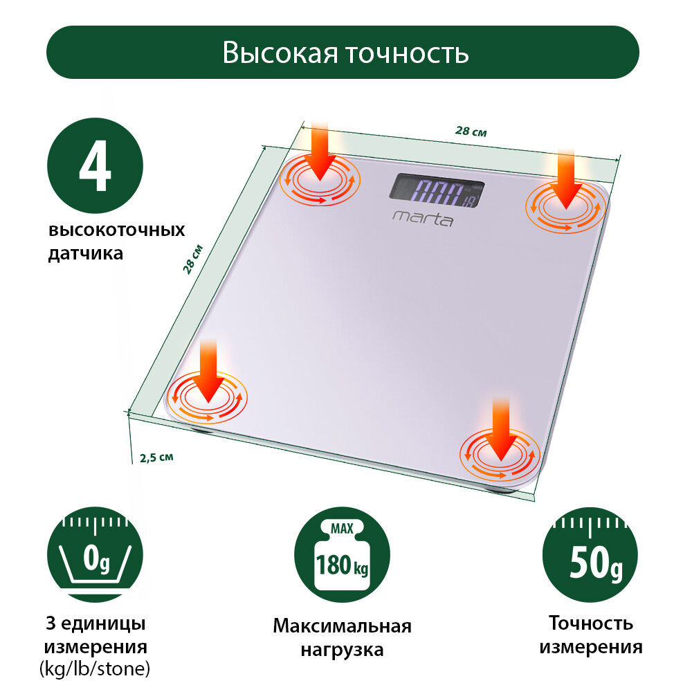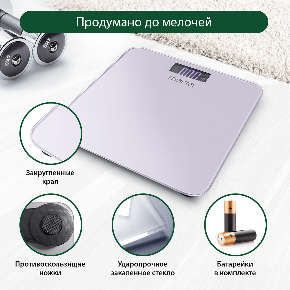 Весы напольные умные MARTA MT-1684 лиловый аметист интересное: