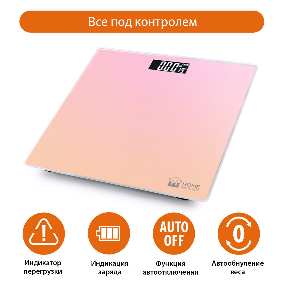 Весы напольные HOME ELEMENT HE-SC906 оранжево-розовый интересное: